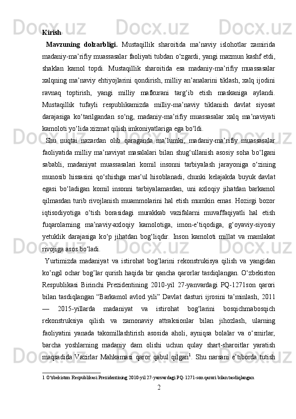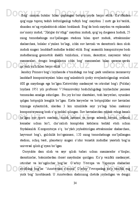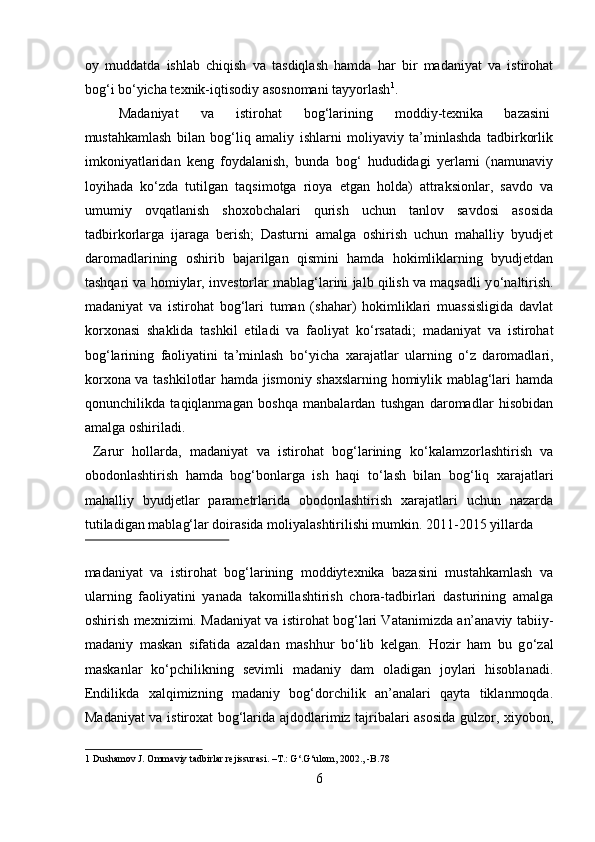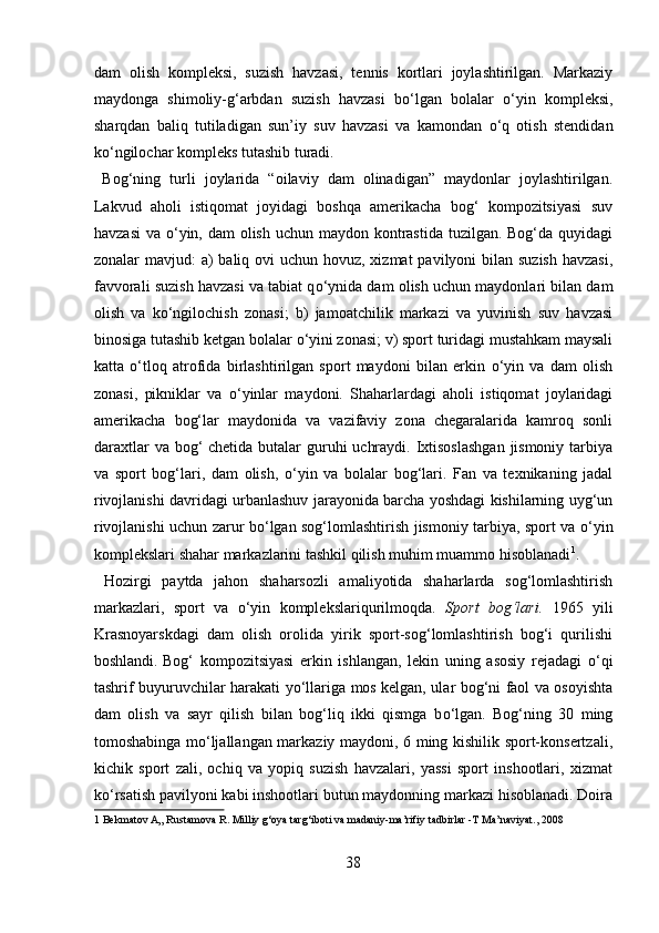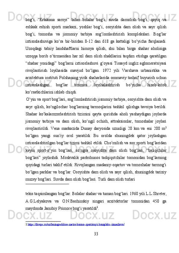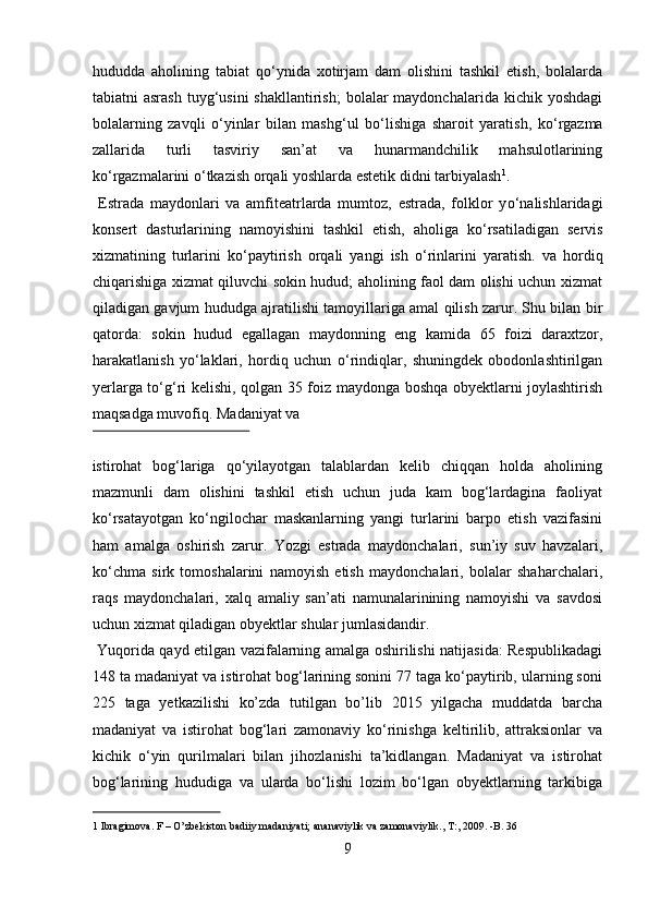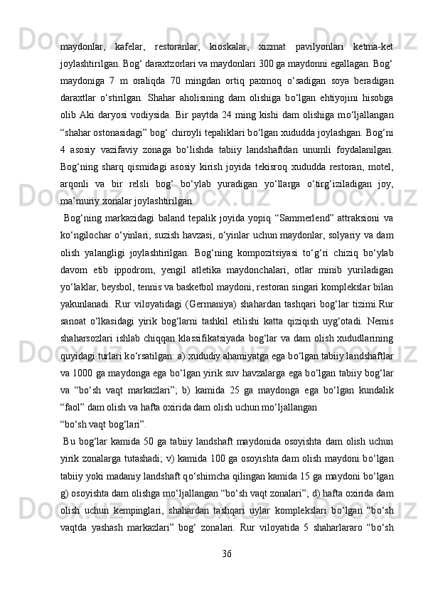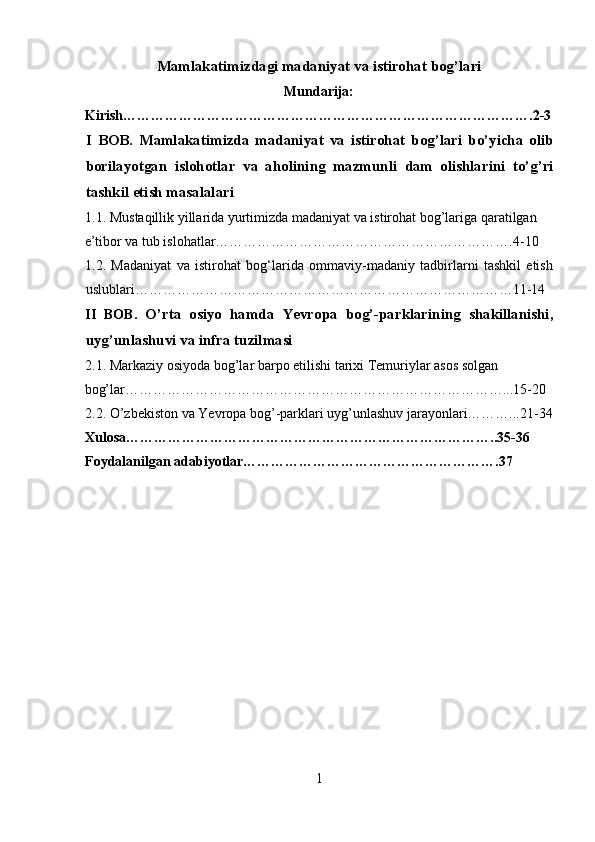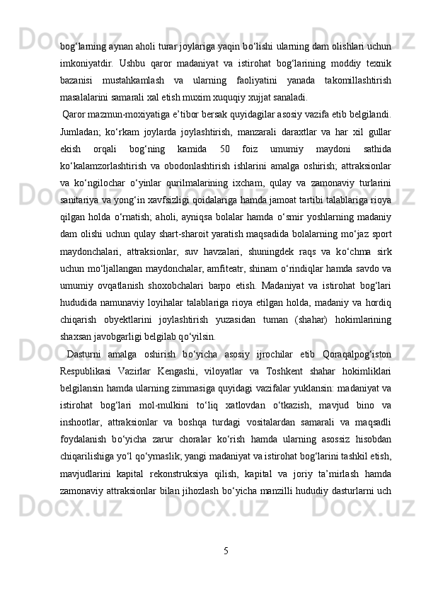 Mamlakatimizdagi madaniyat va istirohat bog’lari haqida