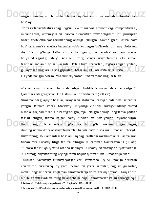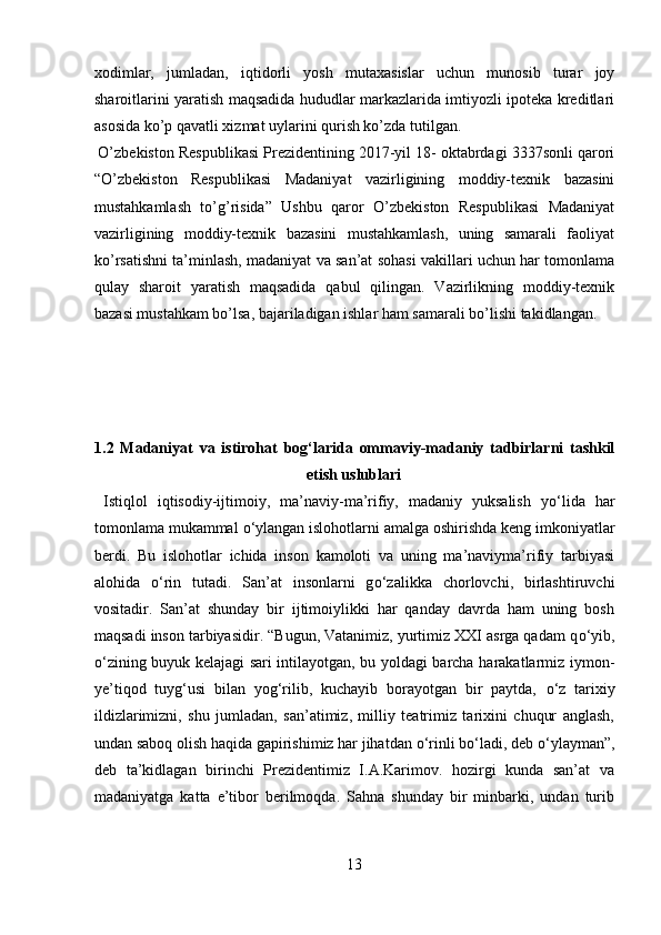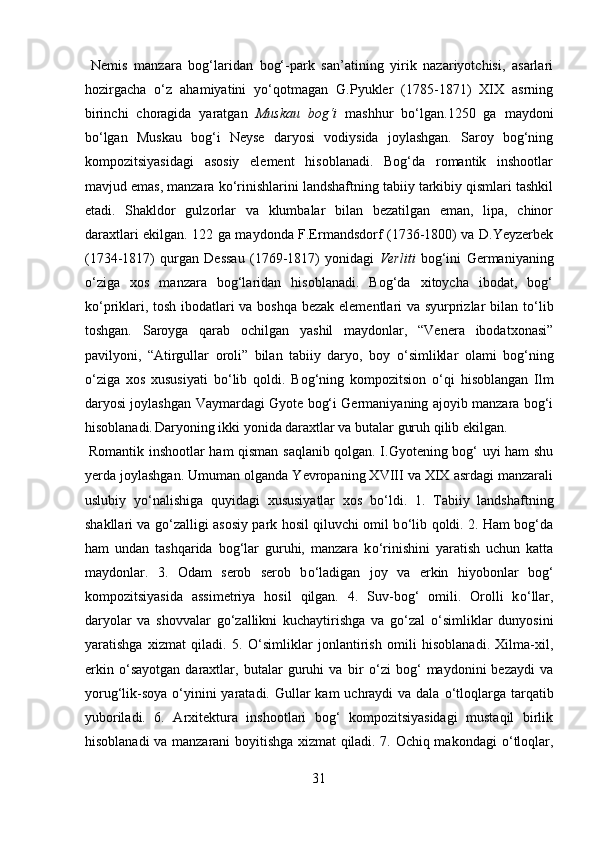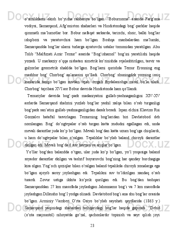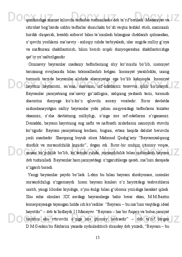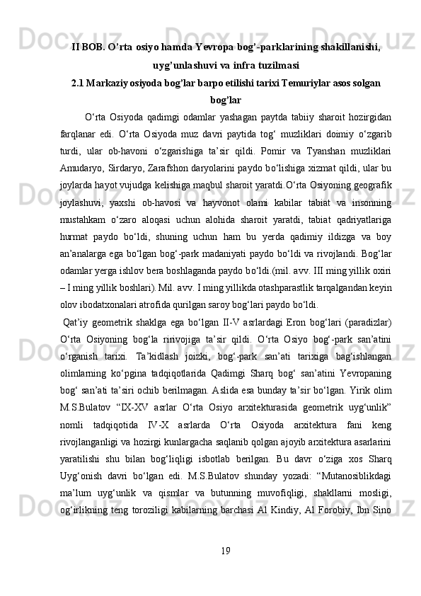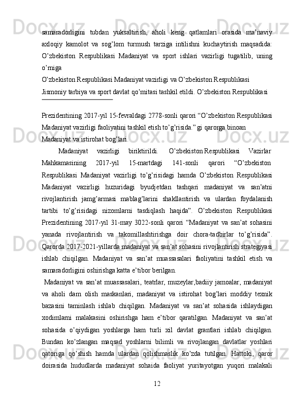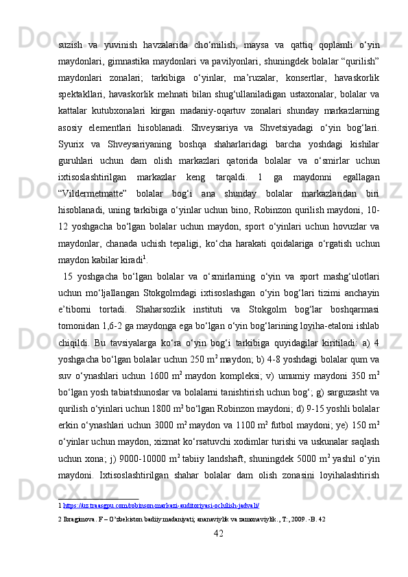 Mamlakatimizdagi madaniyat va istirohat bog’lari haqida