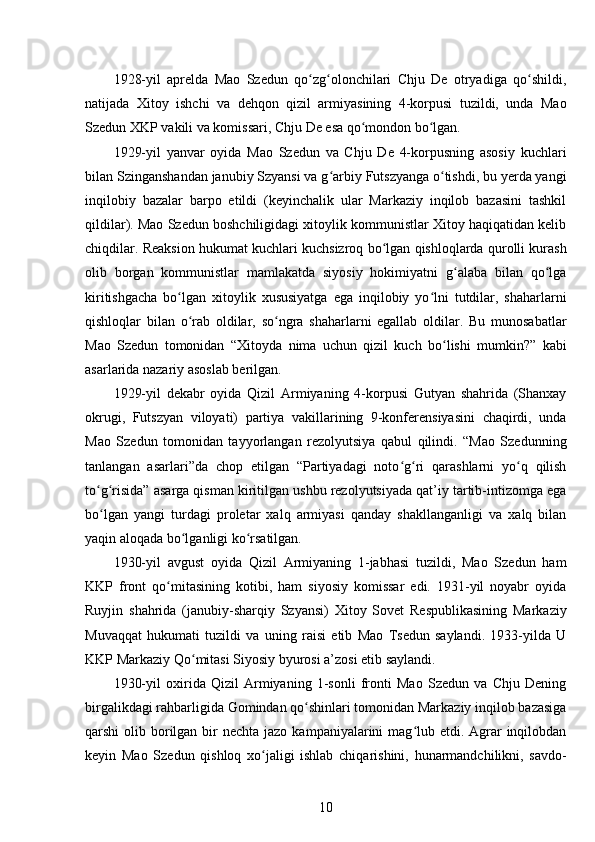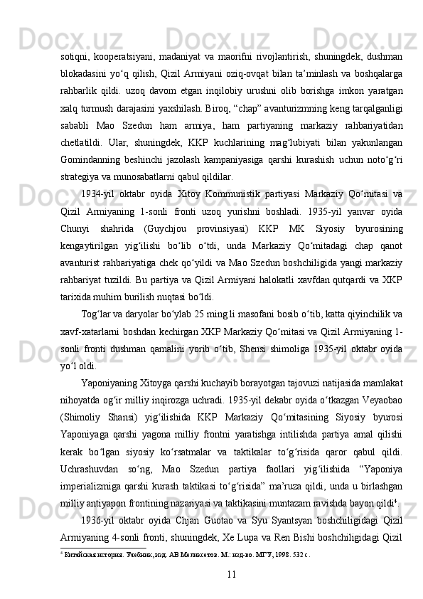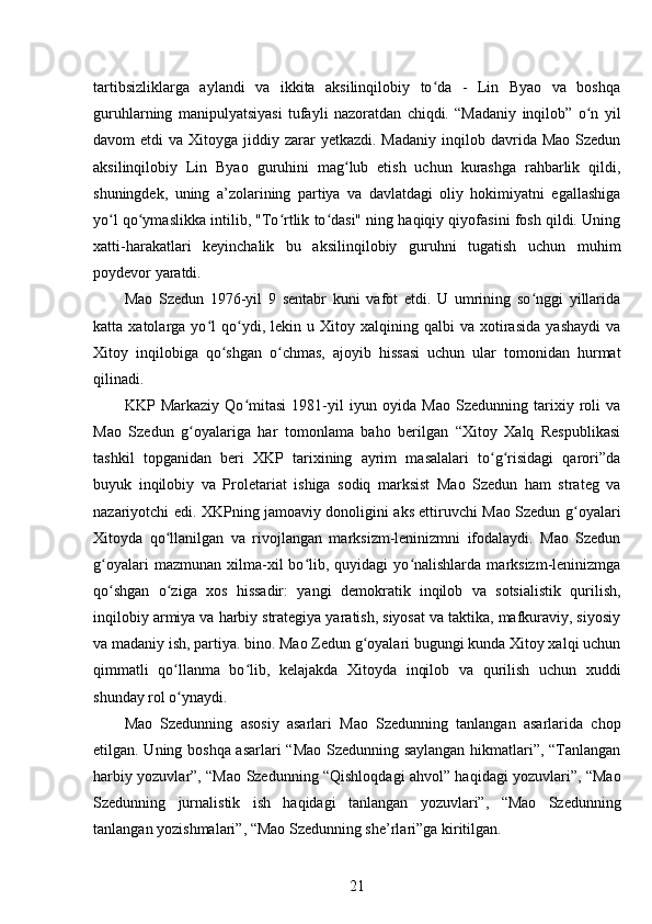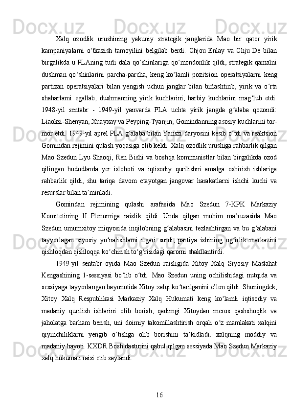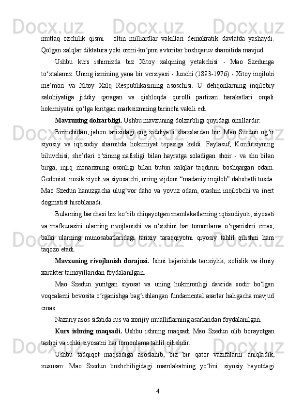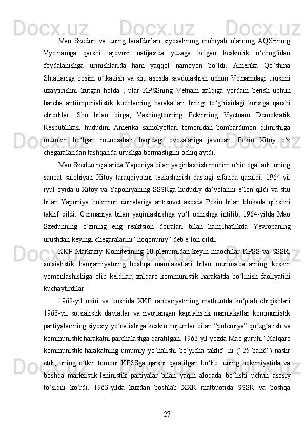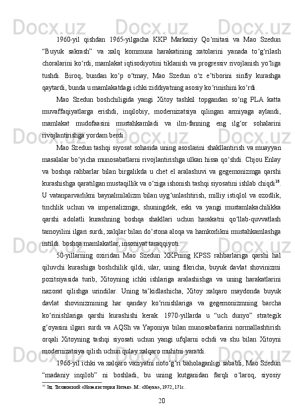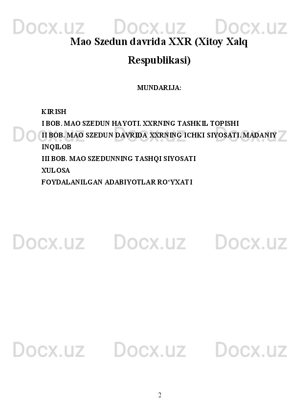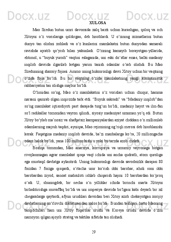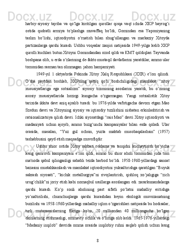 Mao Szedun davrida XXR (Xitoy Xalq Respublikasi)