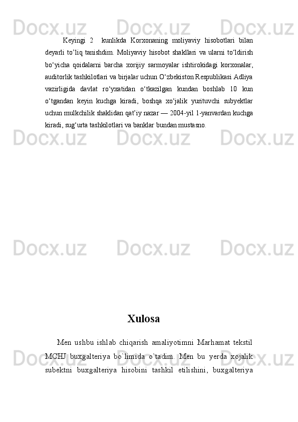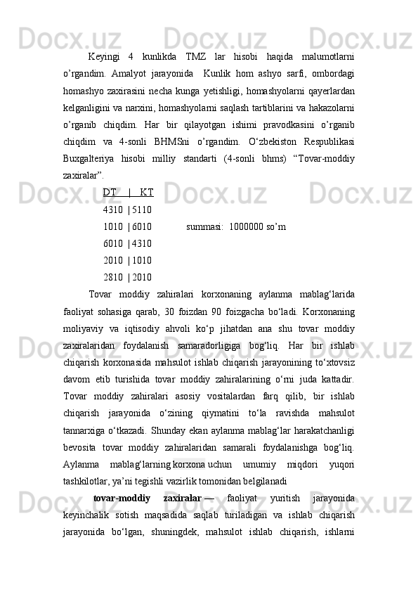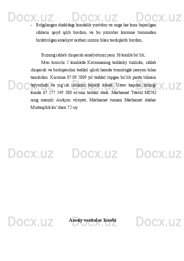 Marhamat tekstil MChJ amaliyot kundaligi hisoboti