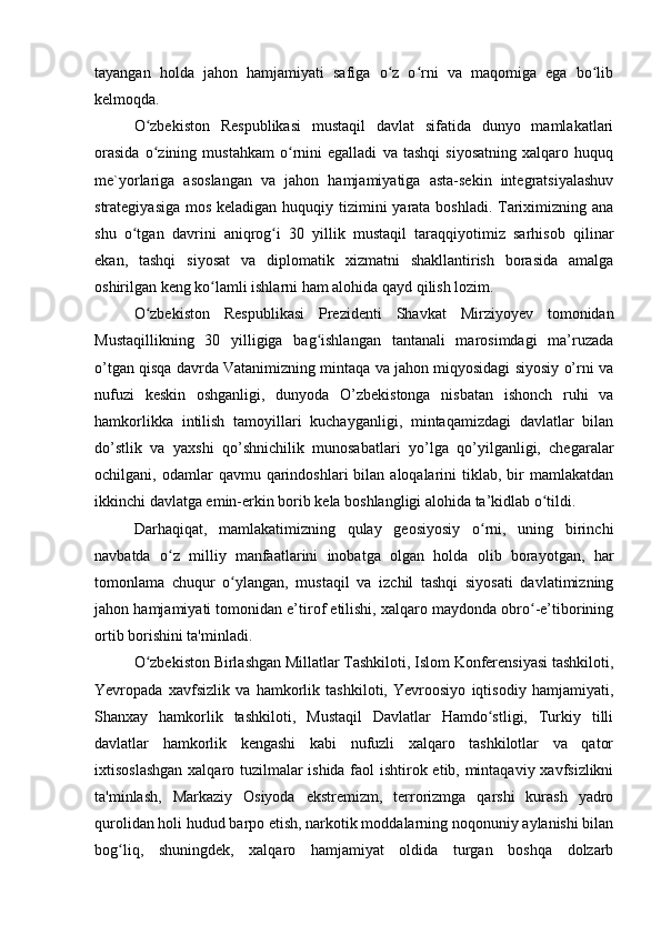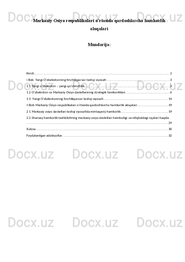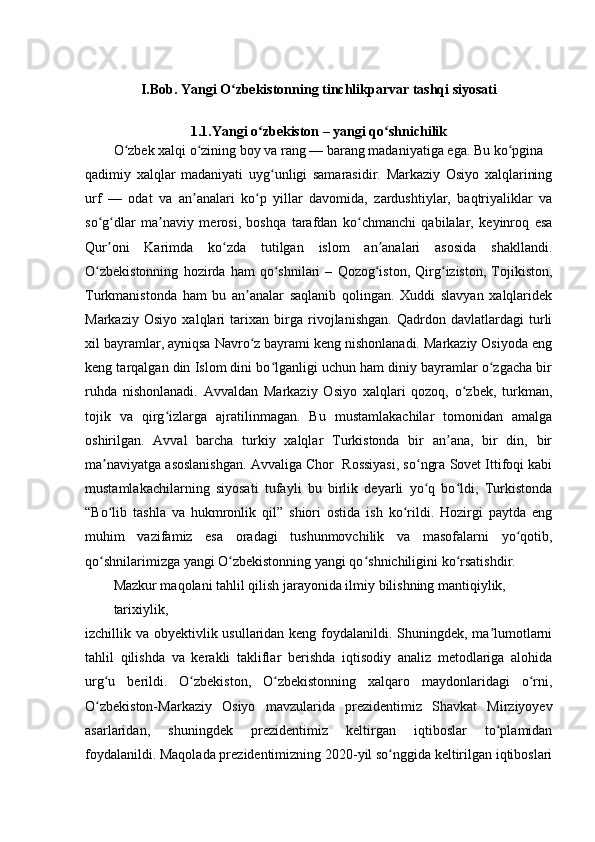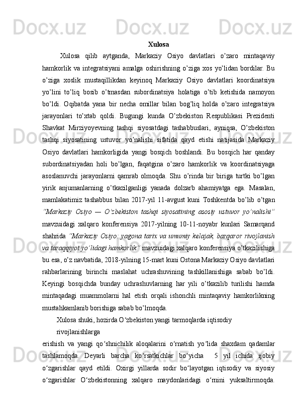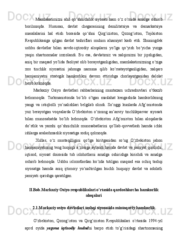 Markaziy Osiyo respublikalari o’rtasida qardoshlarcha hamkorlik aloqalari