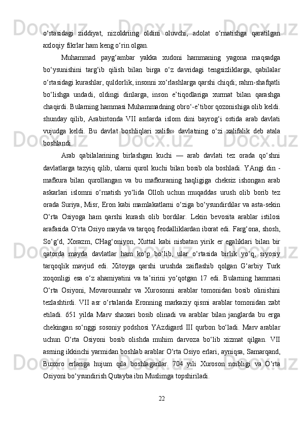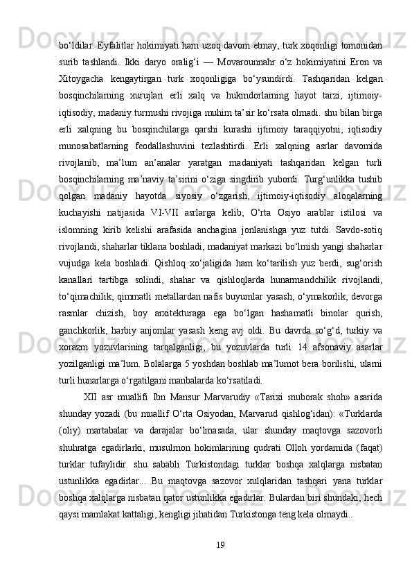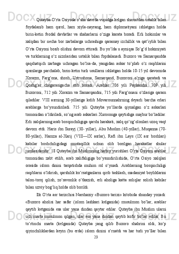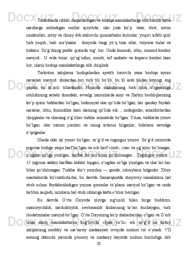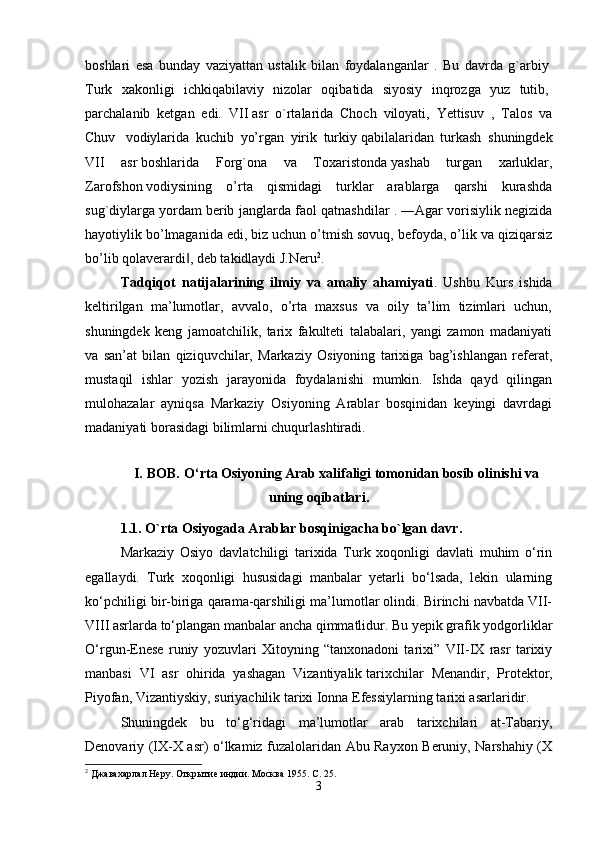 Markaziy osiyo tarixiga bag’ishlangan ilk o’rta asr manbalarining xususiyatlari haqida