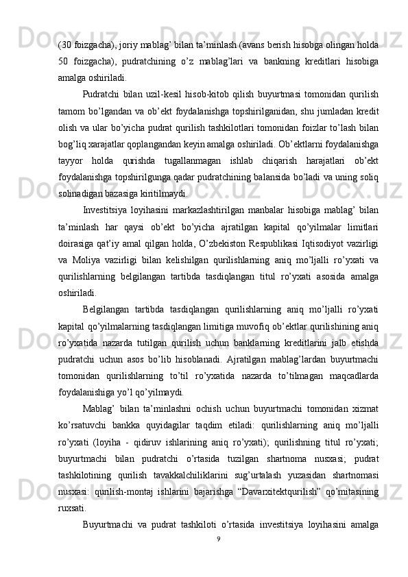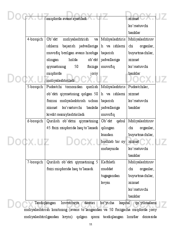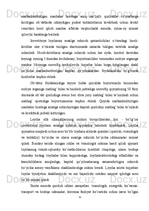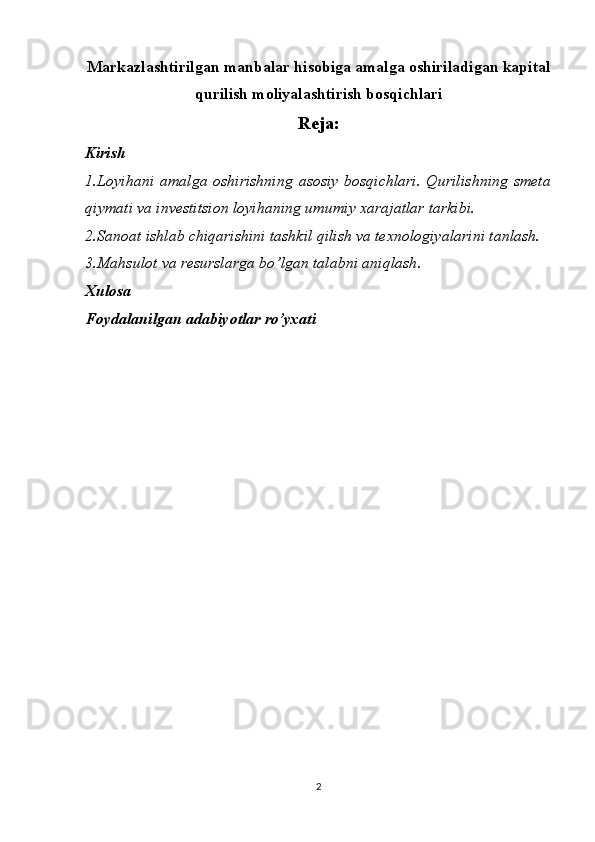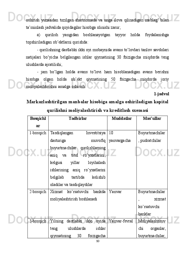 Markazlashtirilgan manbalar hisobiga amalga oshiriladigan kapital qurilish moliyalashtirish bosqichlari