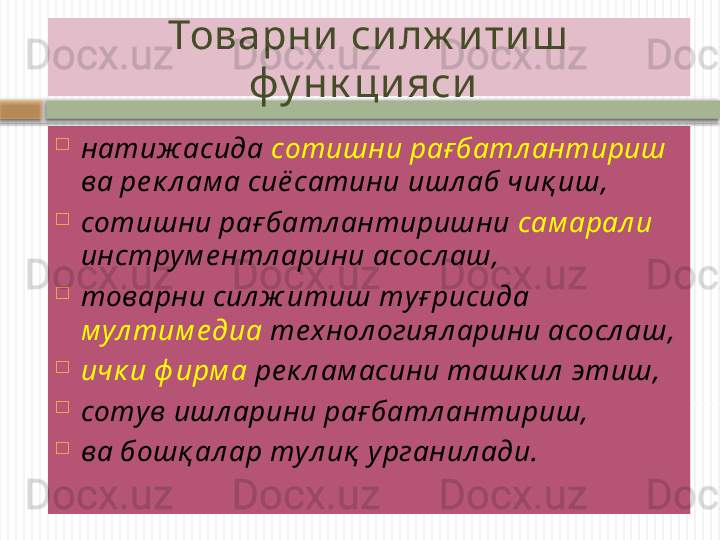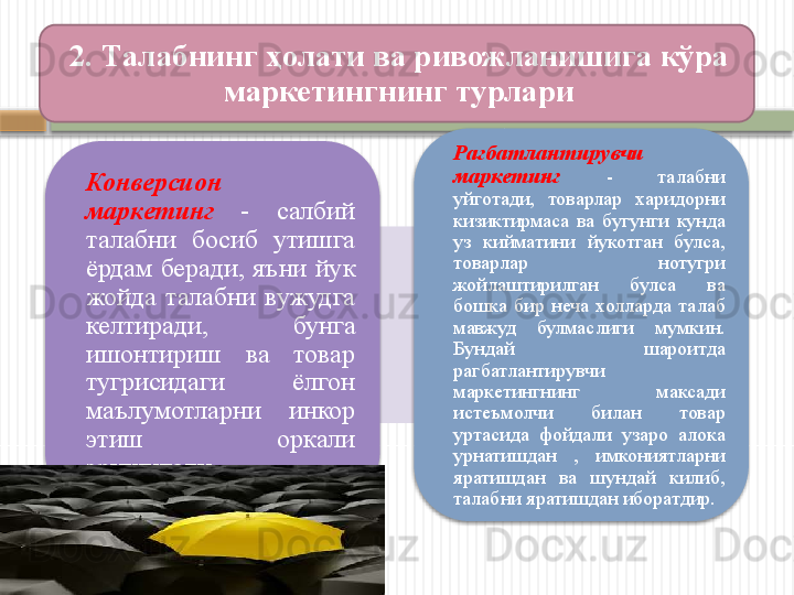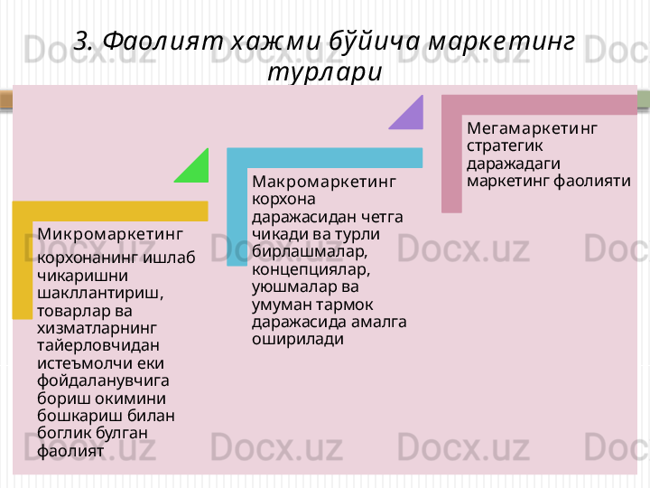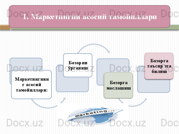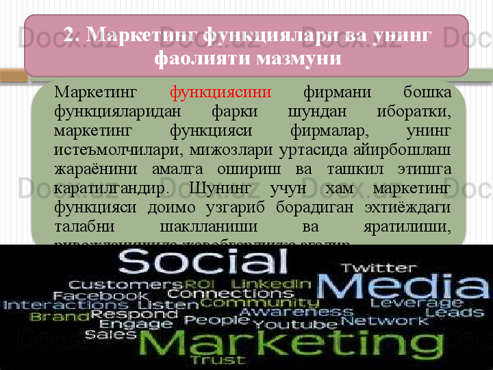 Маркетинг тамойиллари, вазифалари, функциялари ва турлари