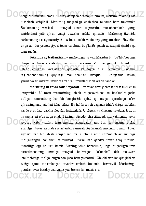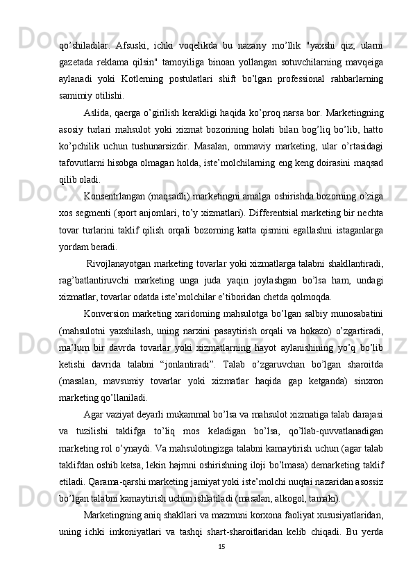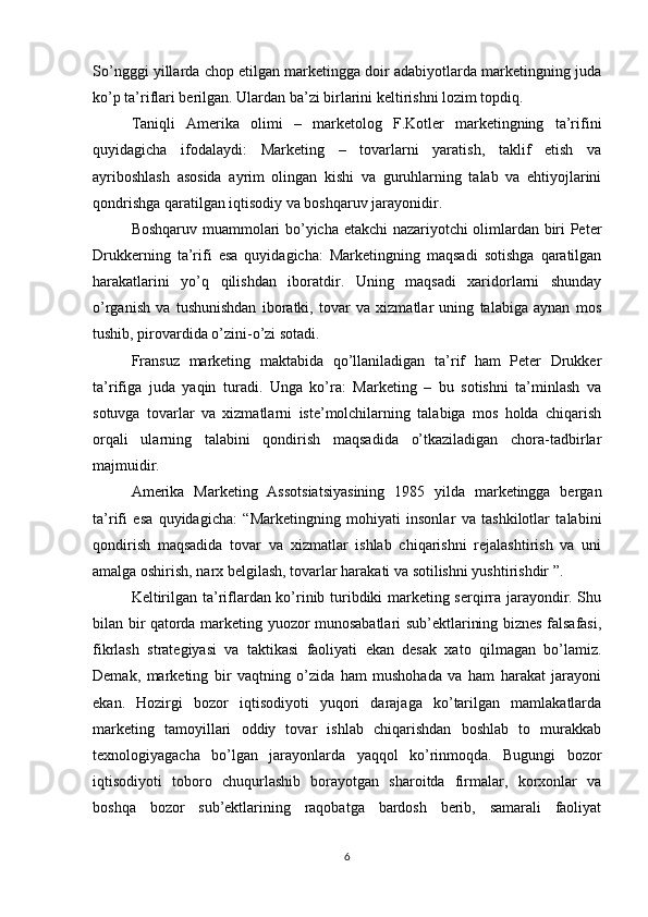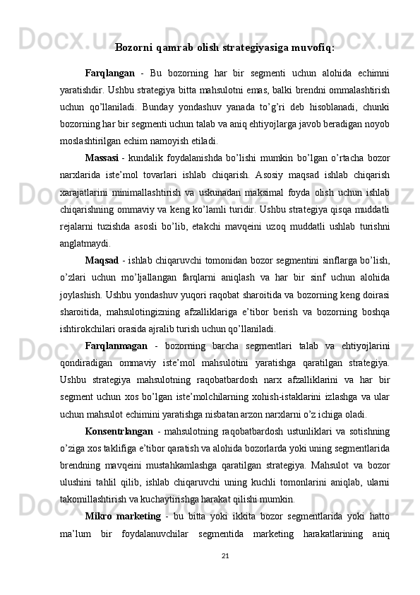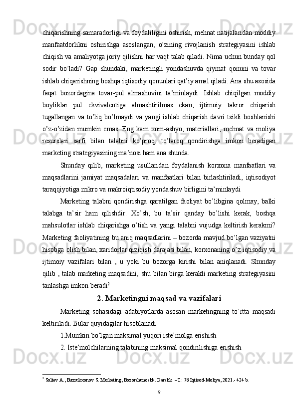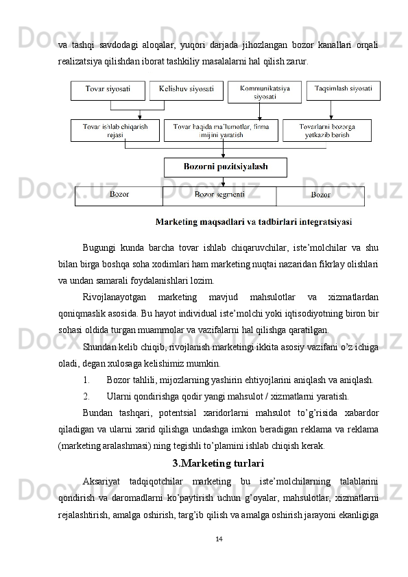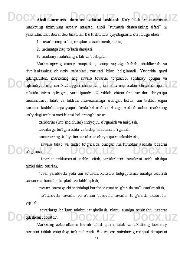 Marketing uning vazifasi, uning qoidalari va bozor tizimidagi o’rni