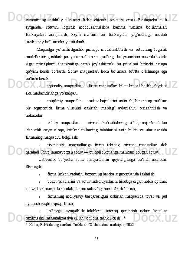 Marketingda mahsulot distributsiyasi zanjirining shakllanishi va samaradorligini baholash