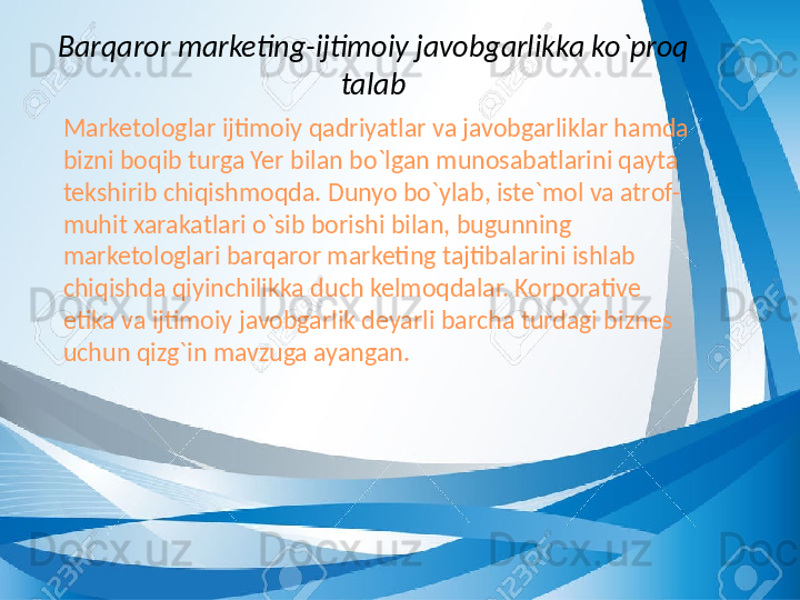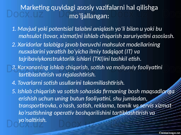 Marketingning mohiyati va uning rivojlanishining asosiy bosqichlari