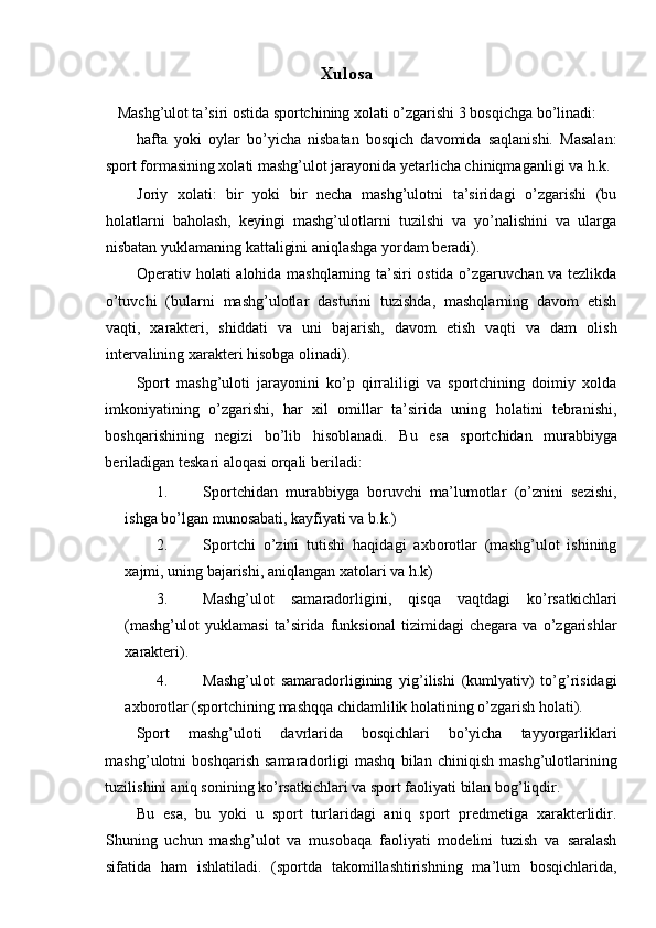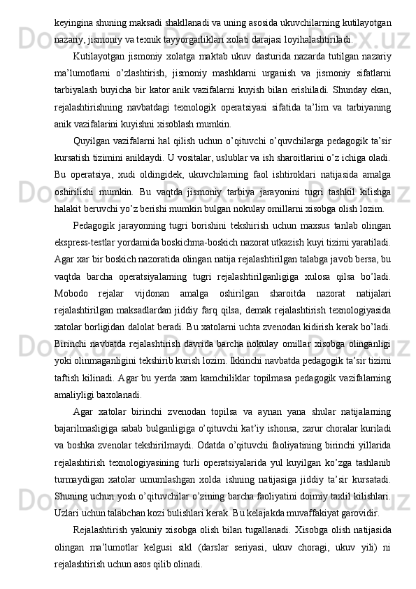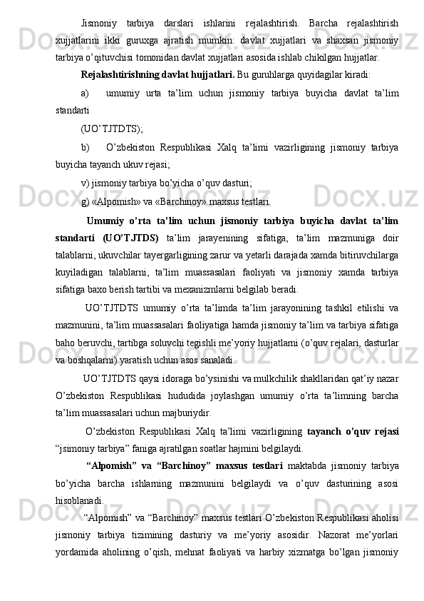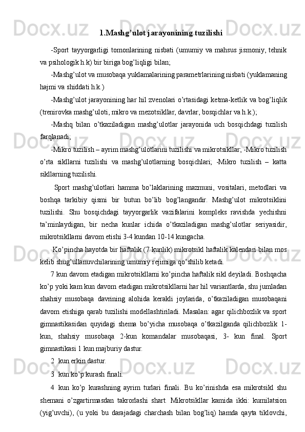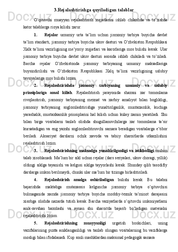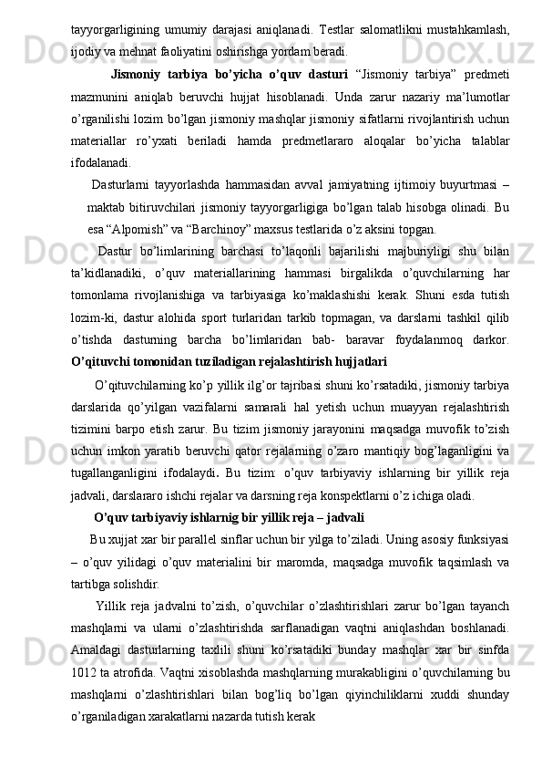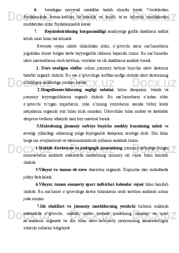 Mashg’ulotlarni rejalashtirish, jismoniy tayyorgarlik vazifalarini hal etish shartlari