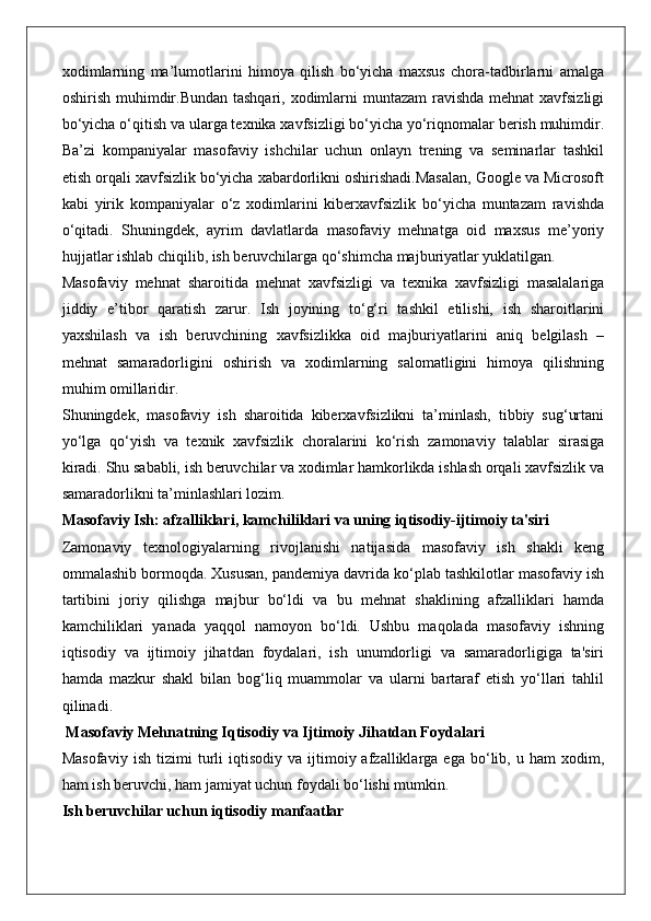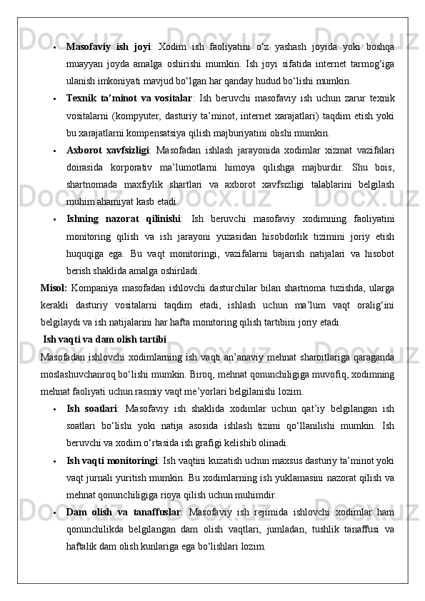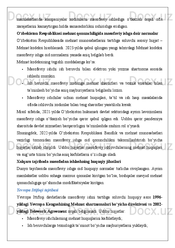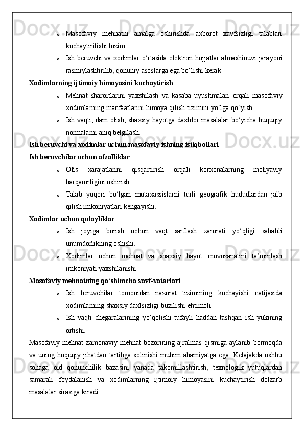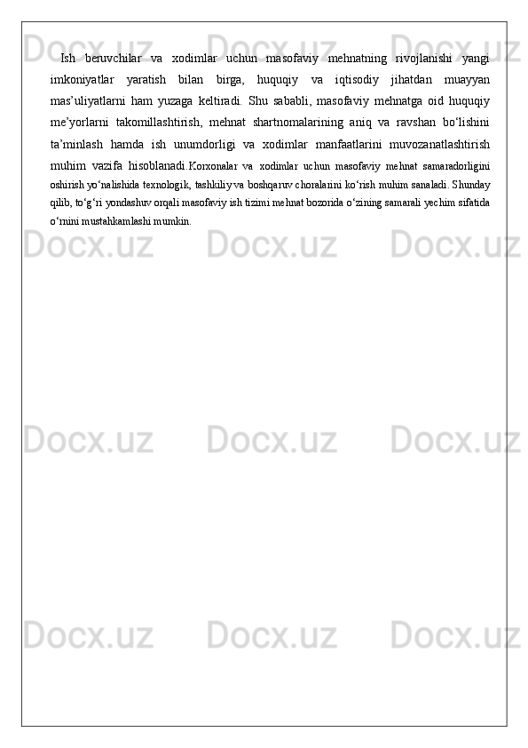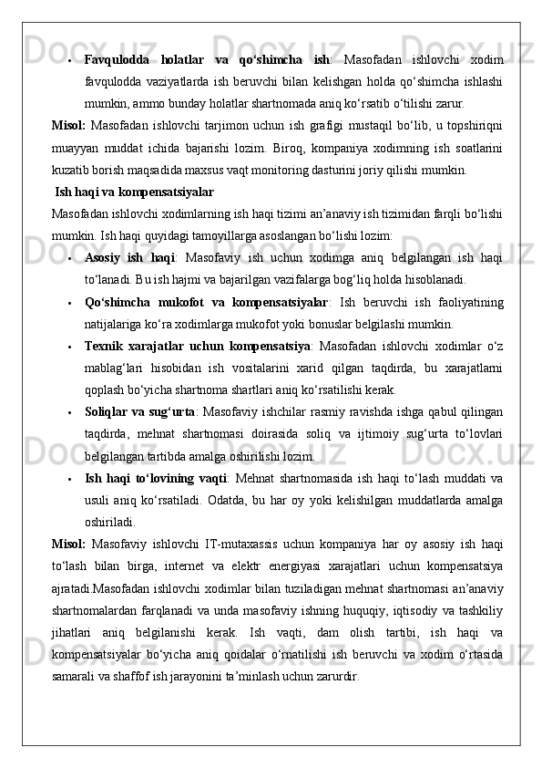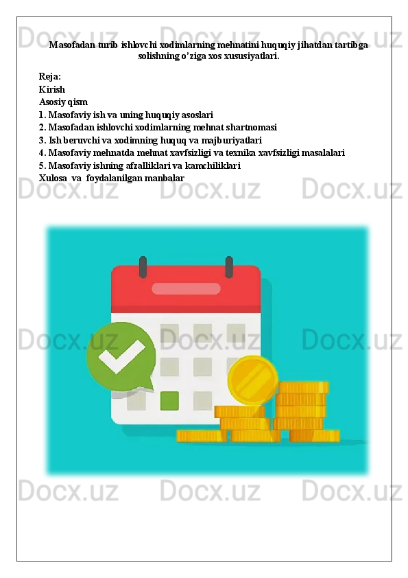 Masofadan turib ishlovchi xodimlarning mehnatini huquqiy jihatdan tartibga solishning o’ziga xos xususiyatlari. 25