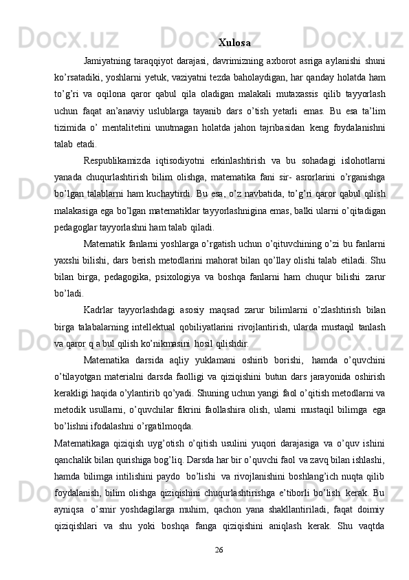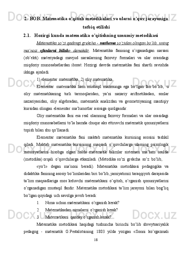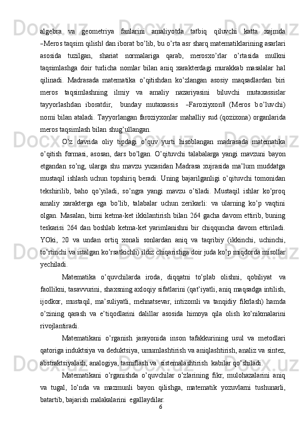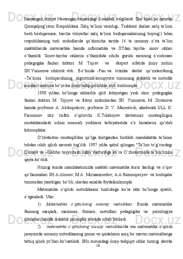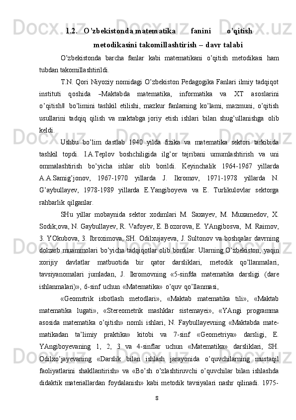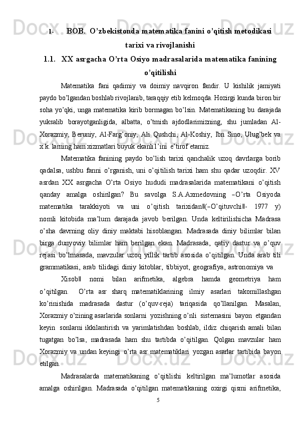 Matematika o’qitish metodikasining taraqqiyot tarixi hamda uning kelajakdagi takomillashuvi va rivoji