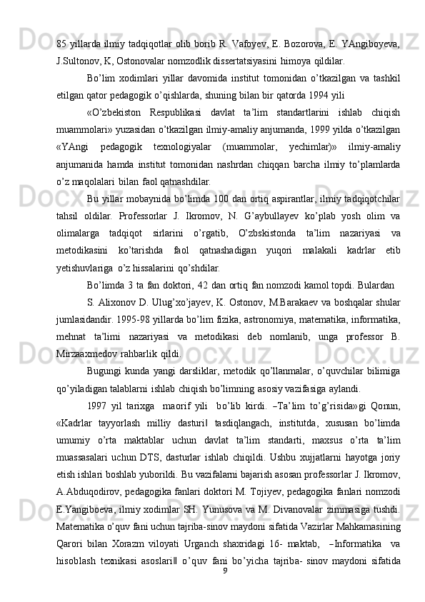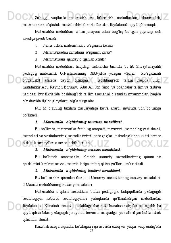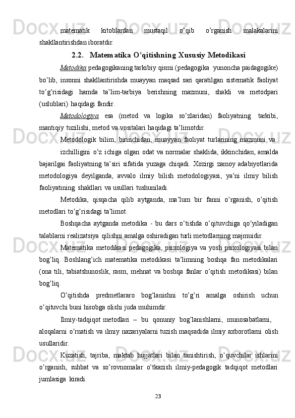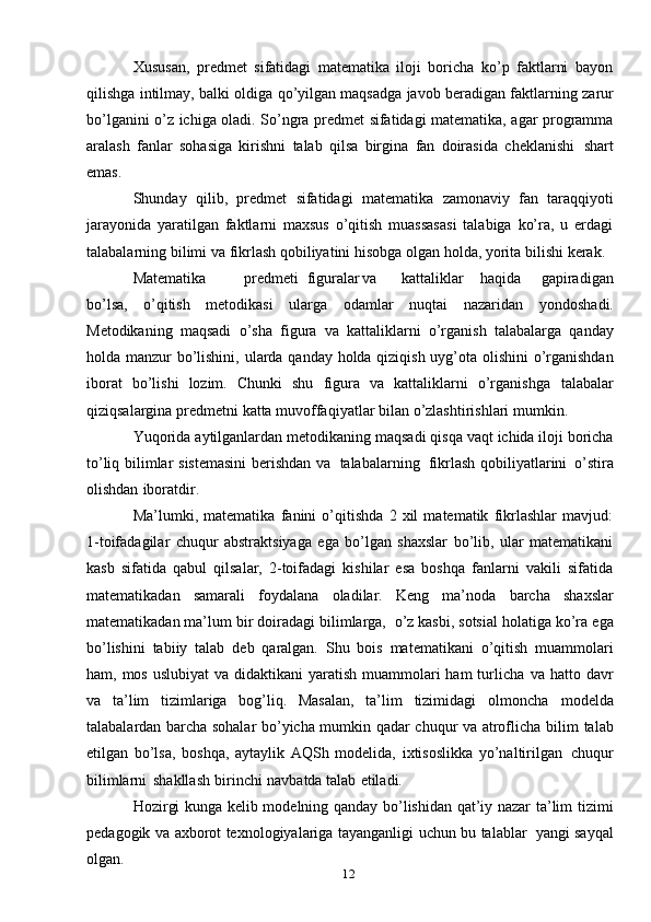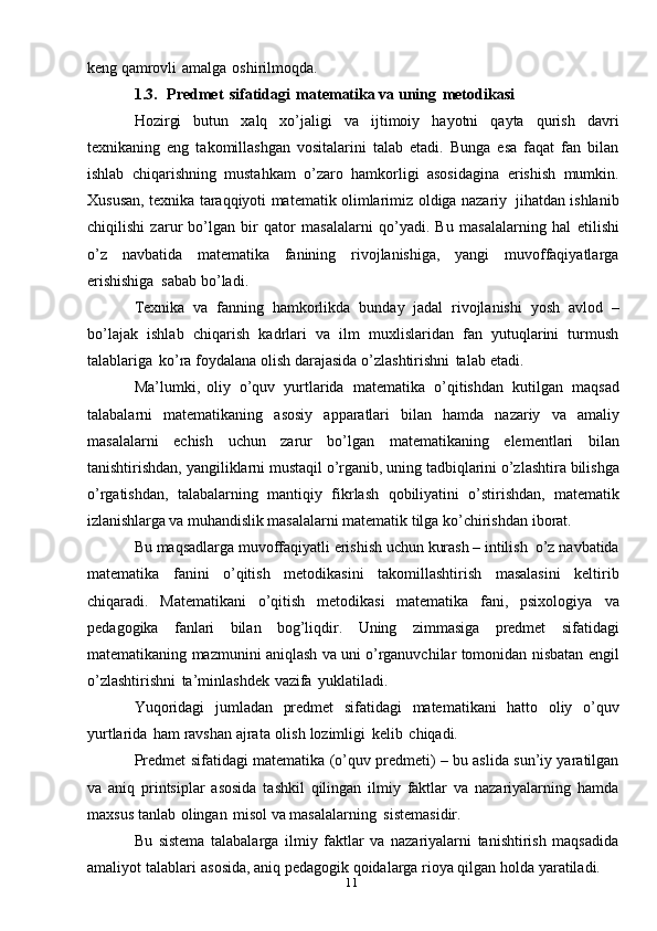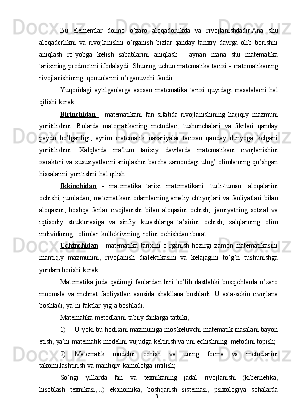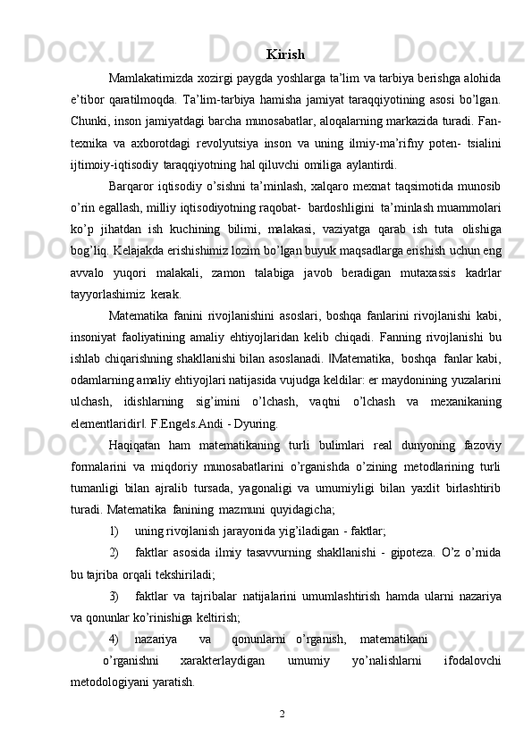 Matematika o’qitish metodikasining taraqqiyot tarixi hamda uning kelajakdagi takomillashuvi va rivoji