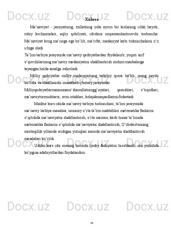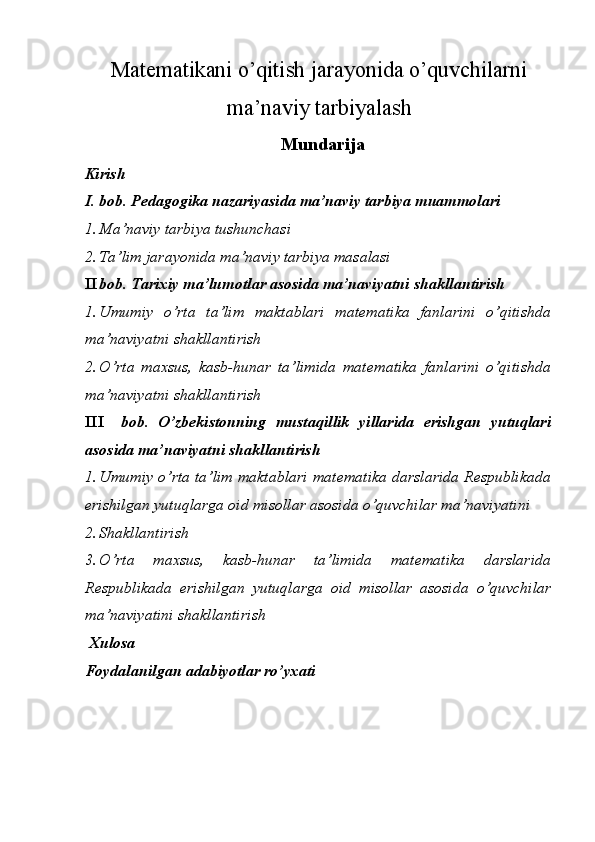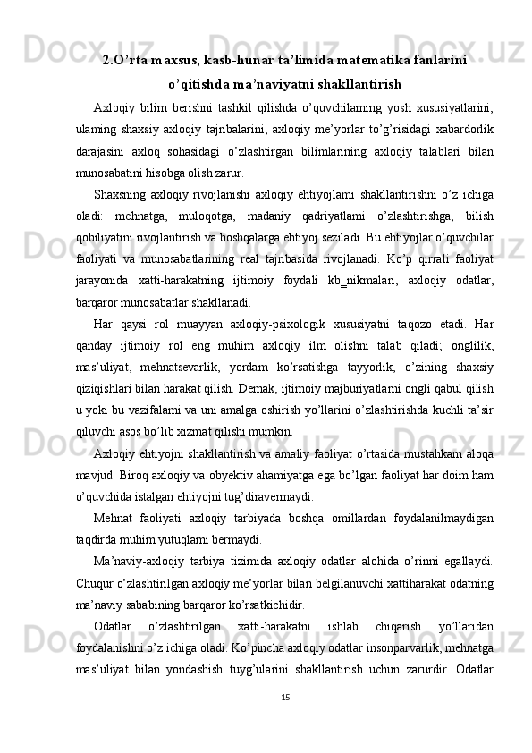 Matematikani o’qitish jarayonida o’quvchilarni ma’naviy tarbiyalash