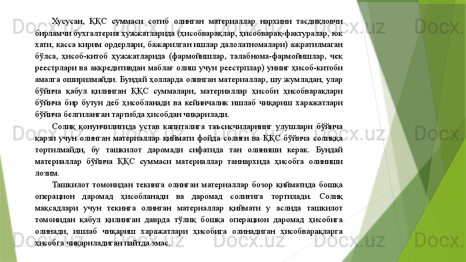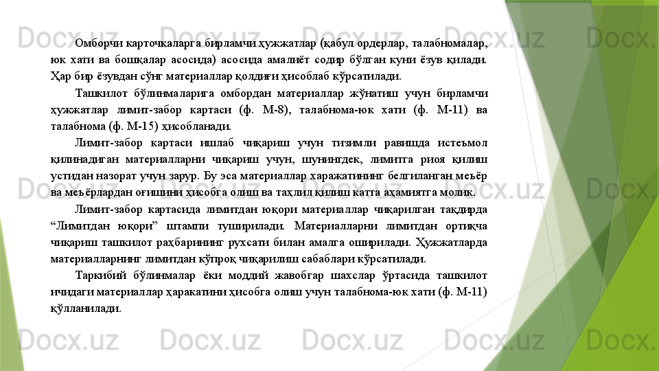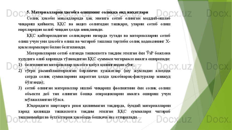 Материаллар ҳисоби