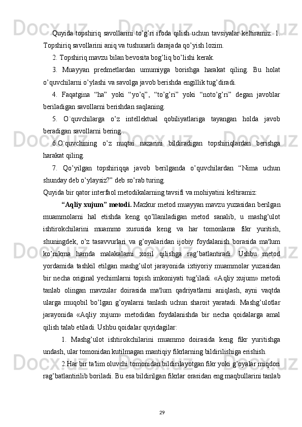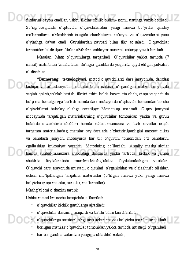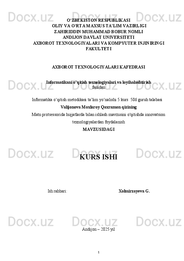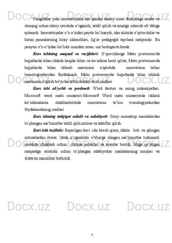 Matn protsessorida hujjatlarda bilan ishlash mavzusini o'qitishda innovatsion texnologiyalardan foydalanish
