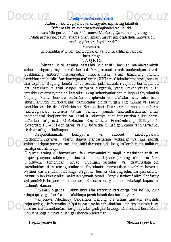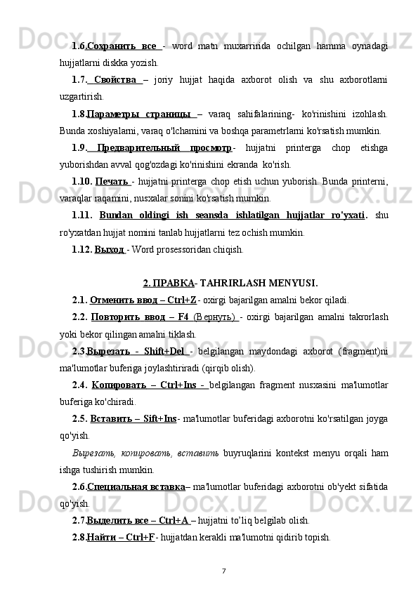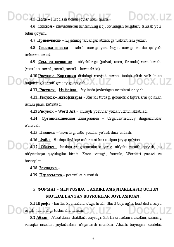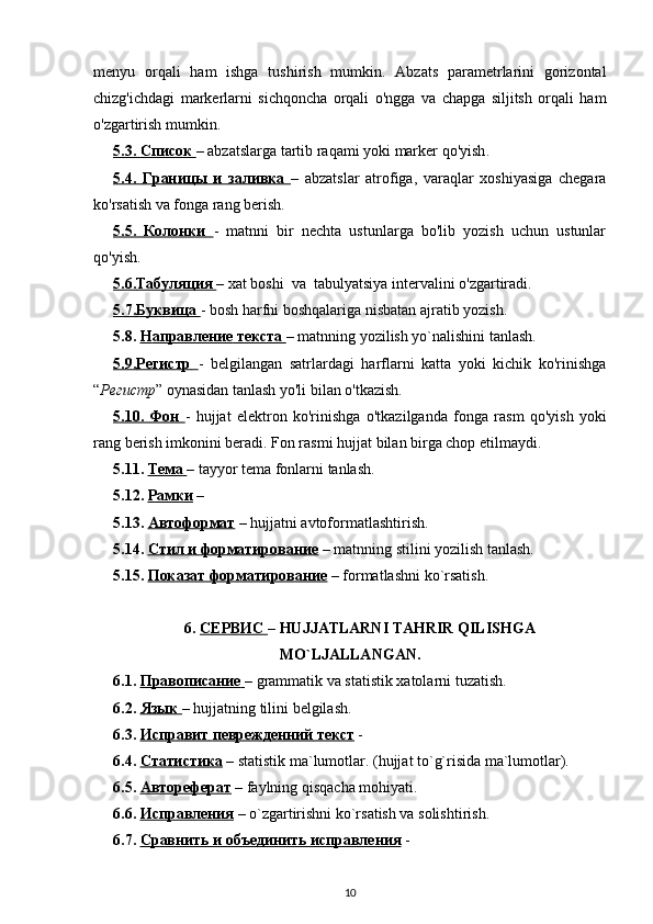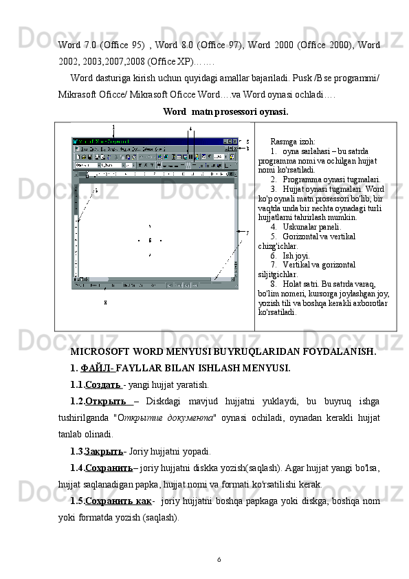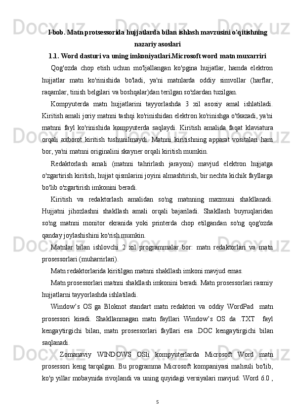 1.1. Word dasturi va uning imkoniyatlari.Microsoft word matn muxarriri 5