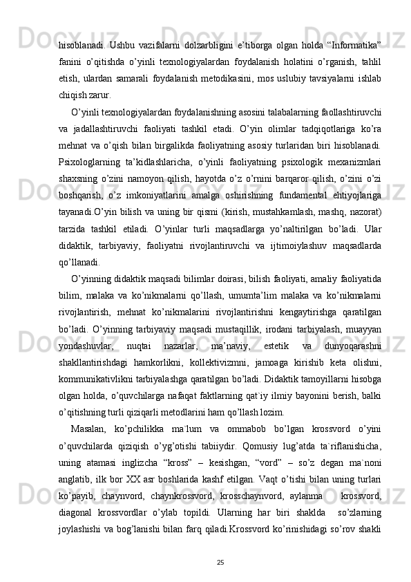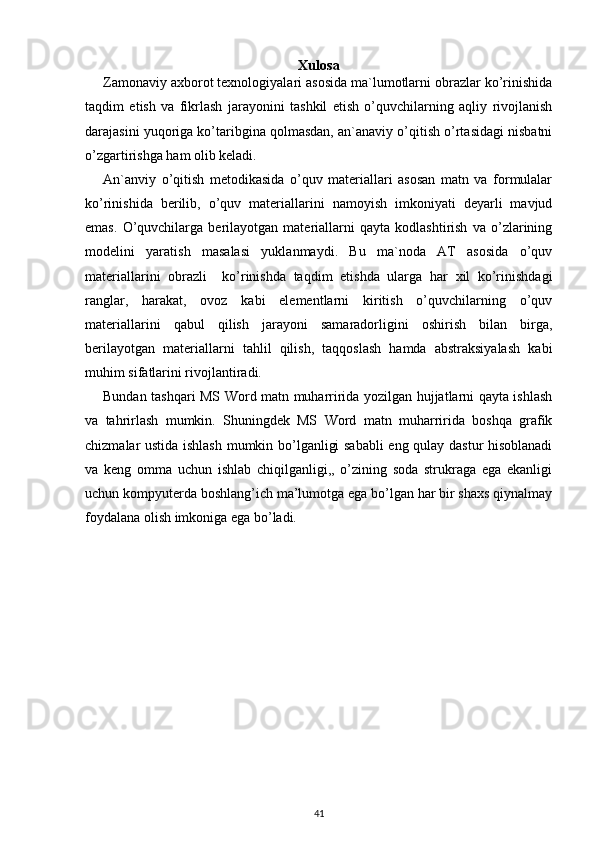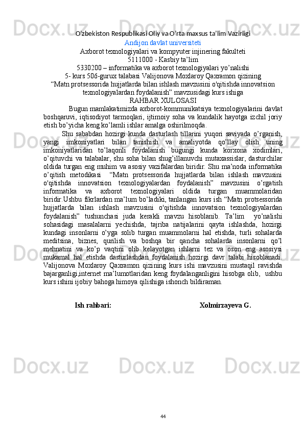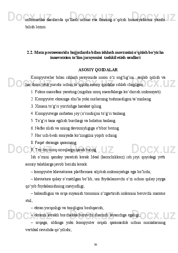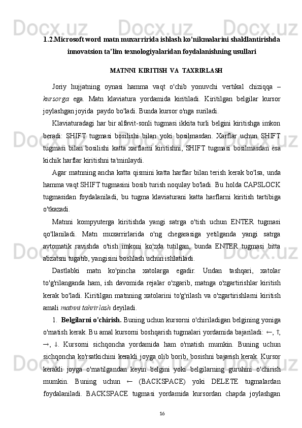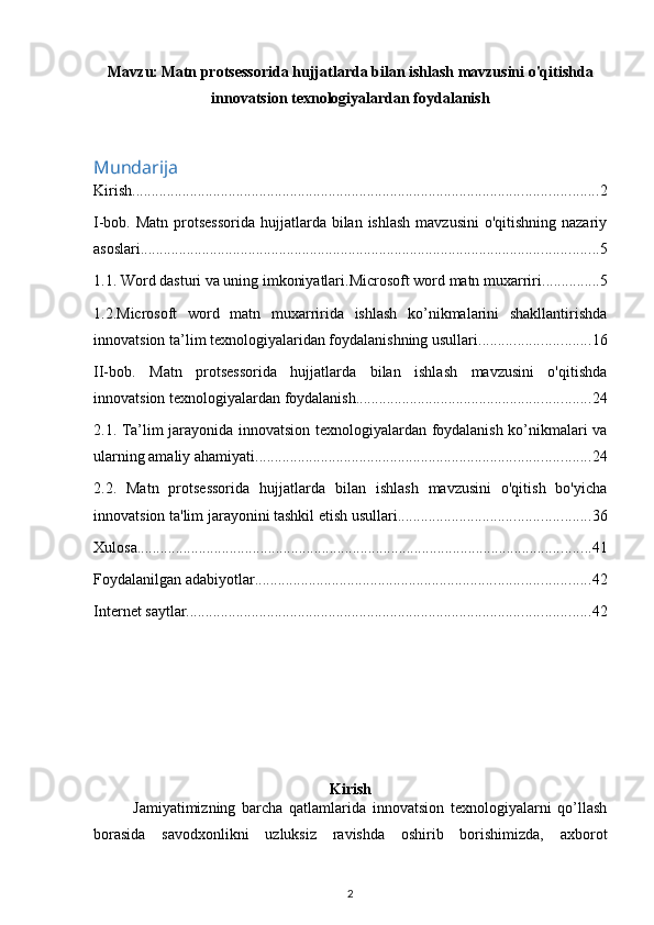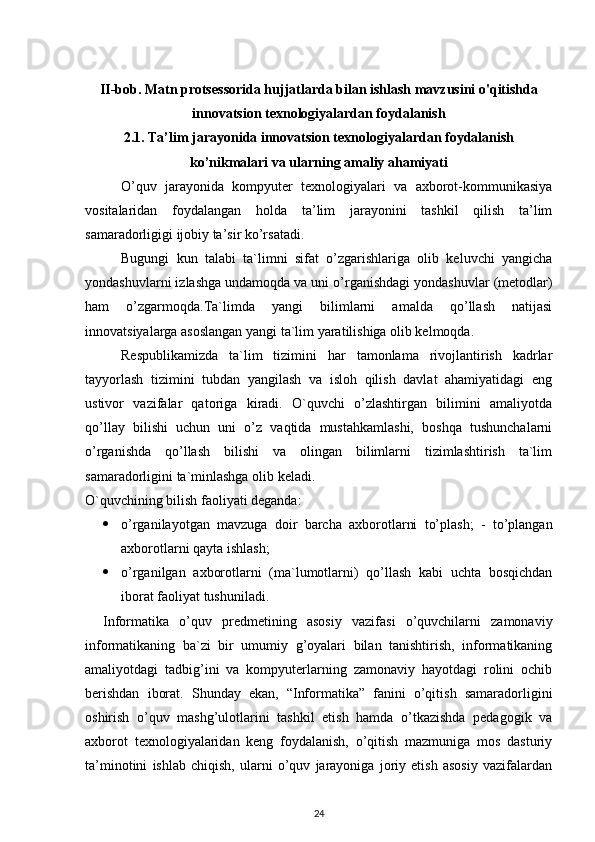 I-bob. Matn protsessorida hujjatlarda bilan ishlash mavzusini o'qitishning nazariy asoslari 5