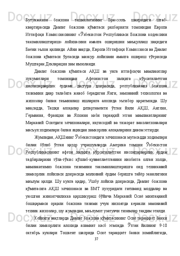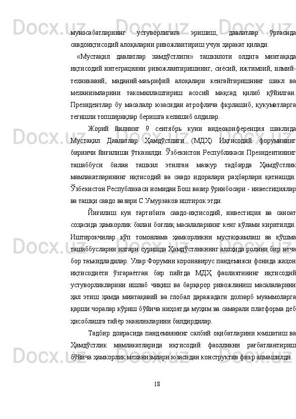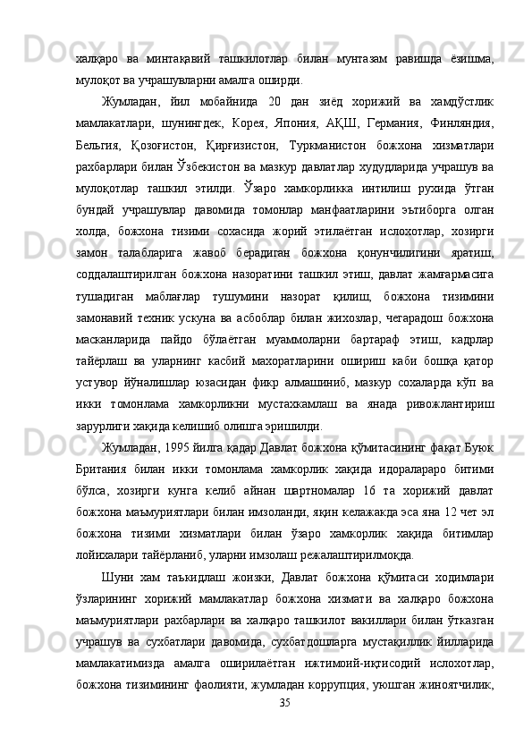 МДХ давлатлари божхона ҳамкорлигини ривожлантириш