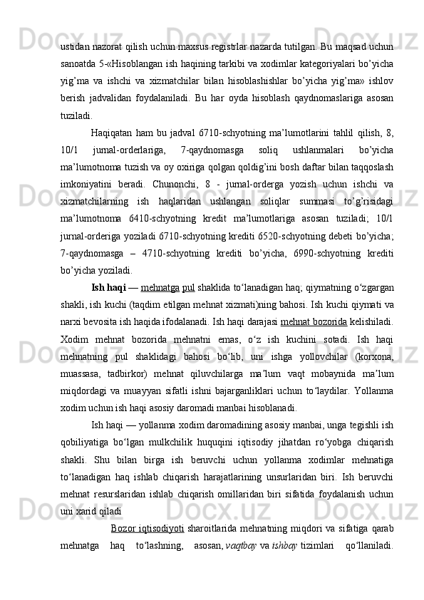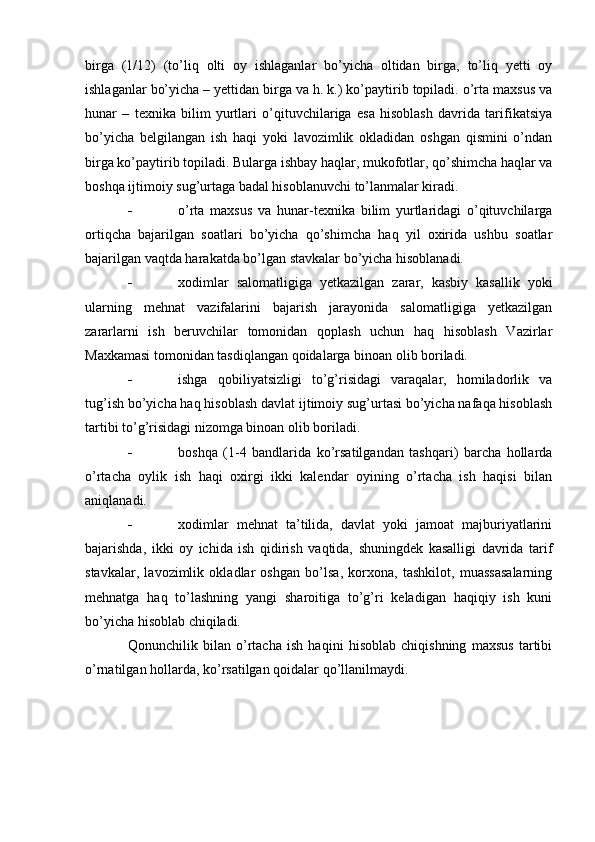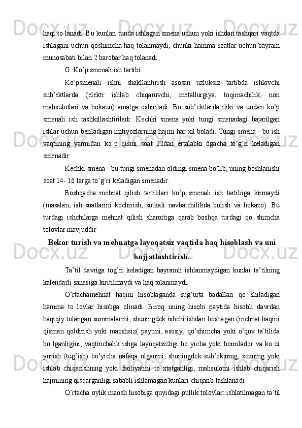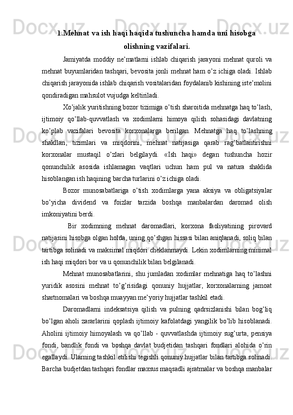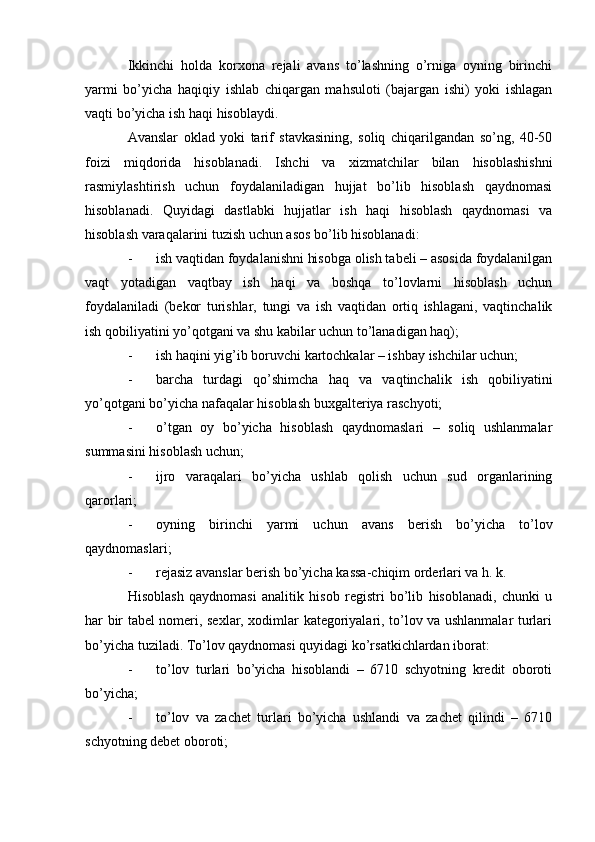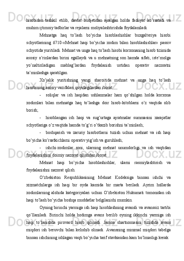 Mеhnаt hаqini hisоblаsh vа to’lаshni hujjаtlаshtirish