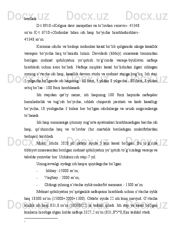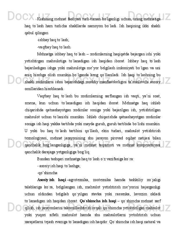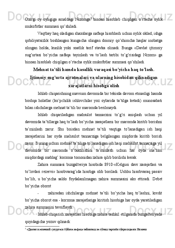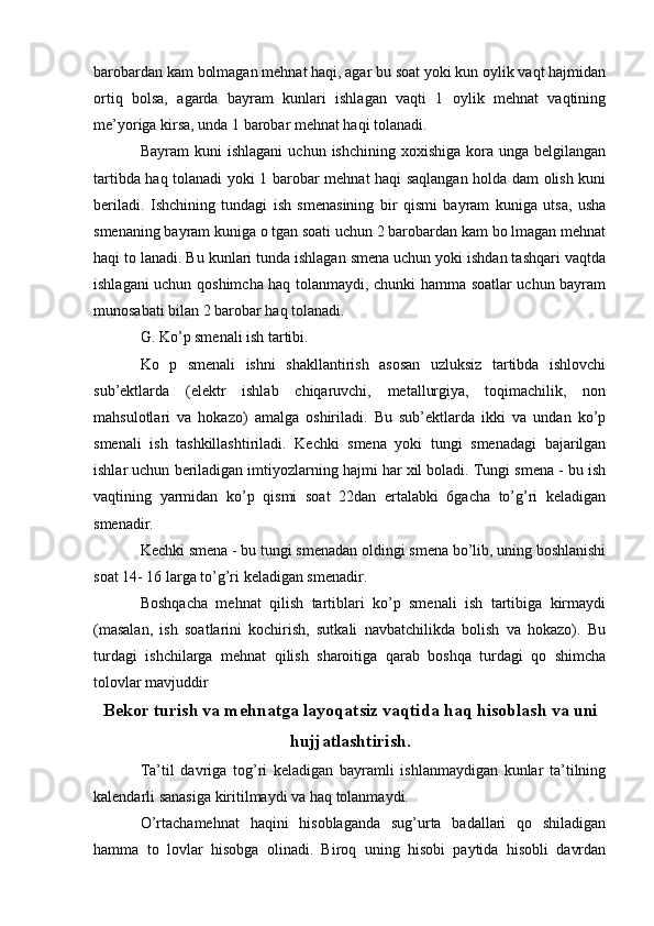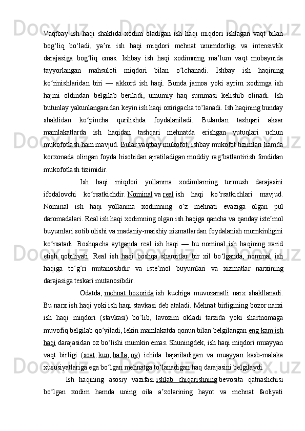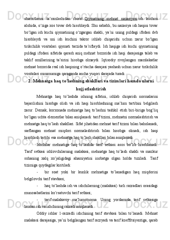 Mеhnаt hаqini hisоblаsh vа to’lаshni hujjаtlаshtirish