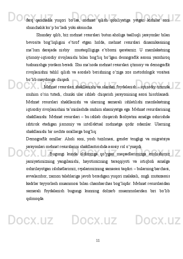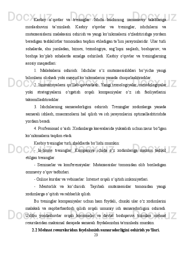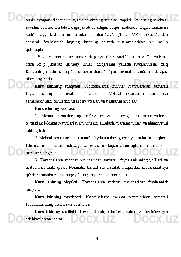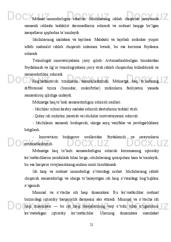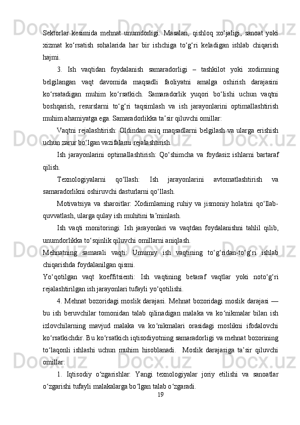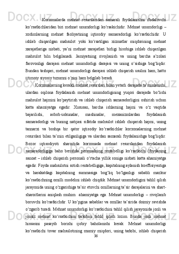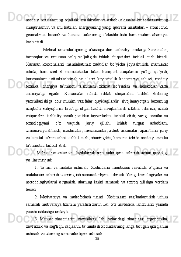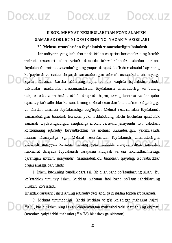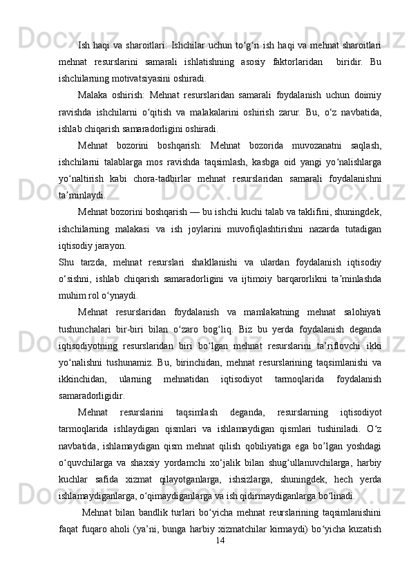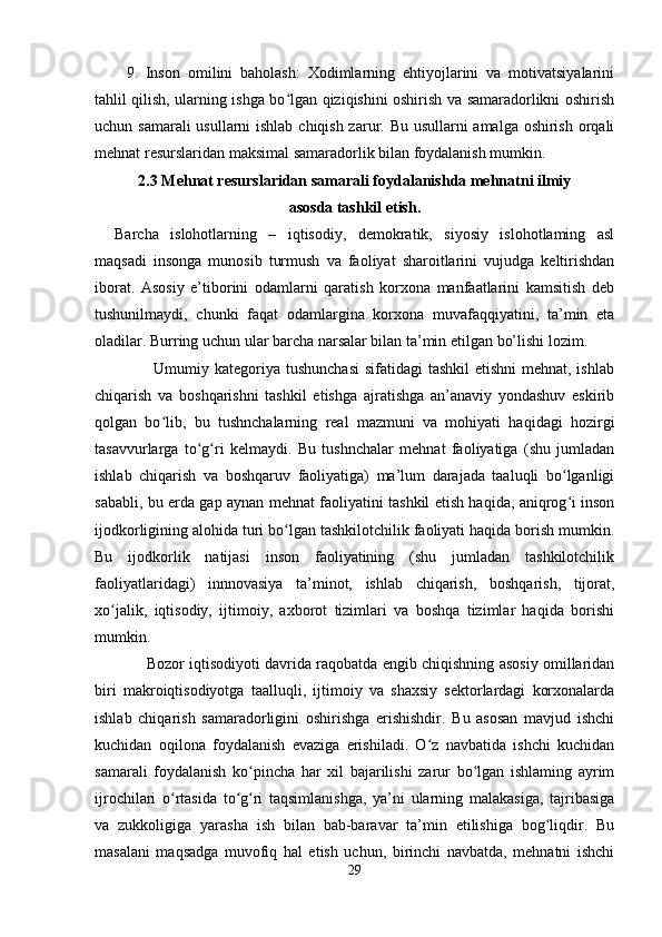 Mehnat resurslaridan foydalanish samaradorligini oshirish