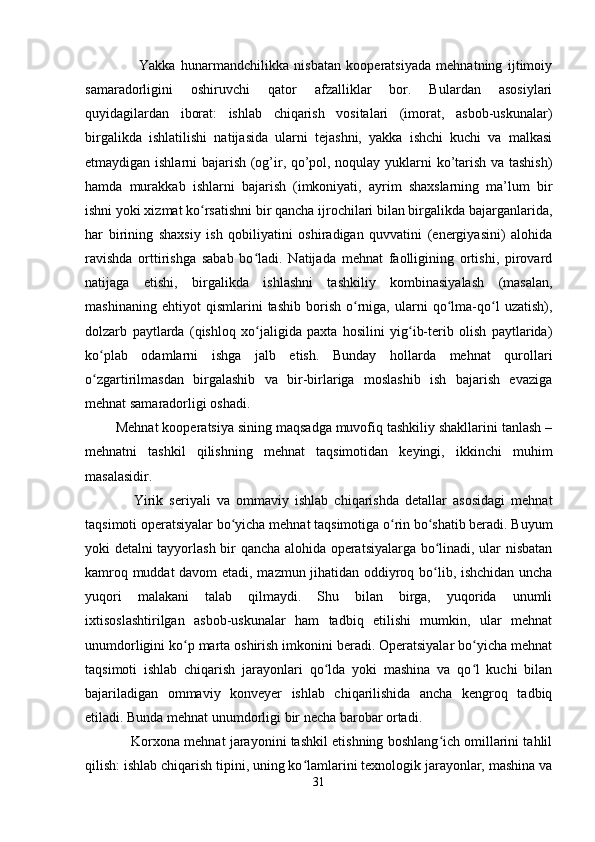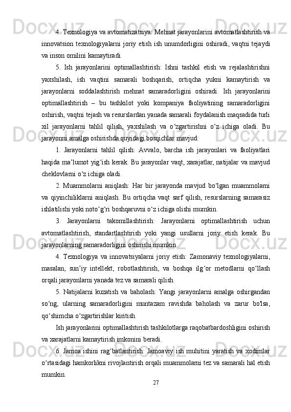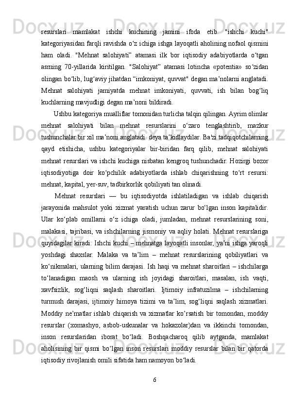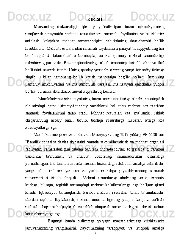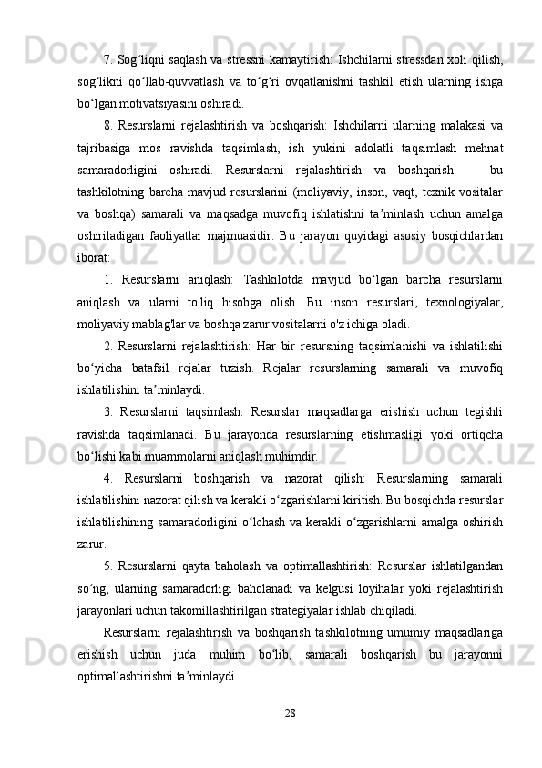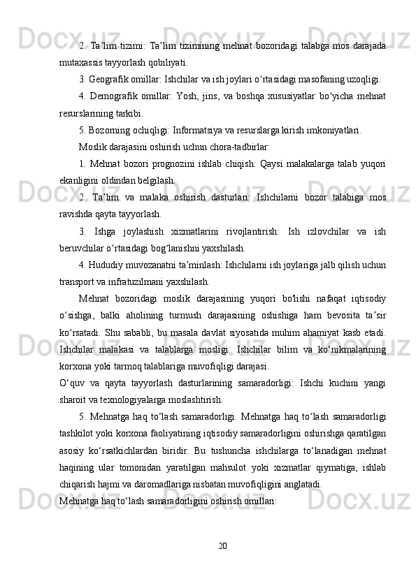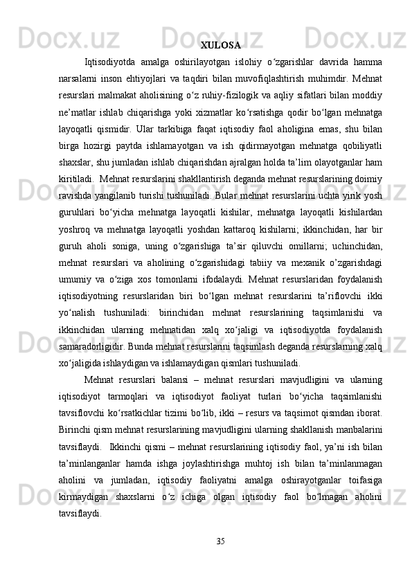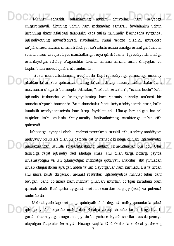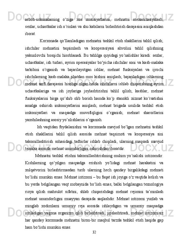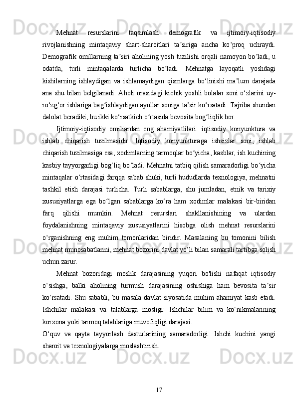 Mehnat resurslaridan foydalanish samaradorligini oshirish