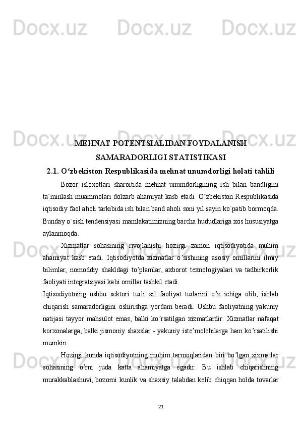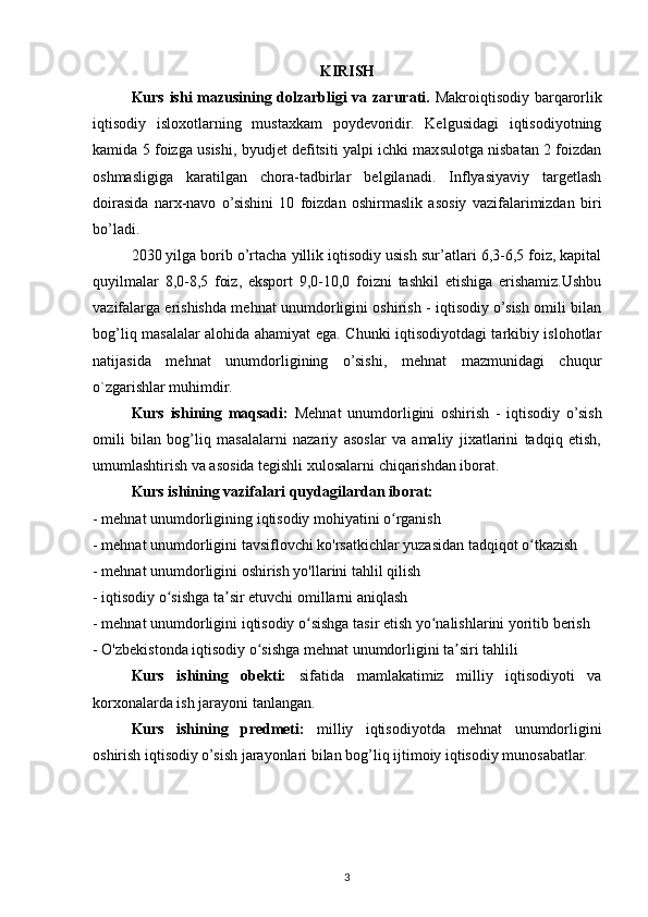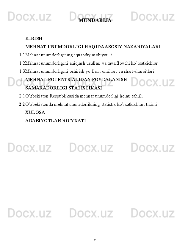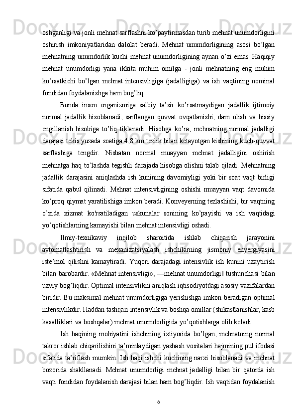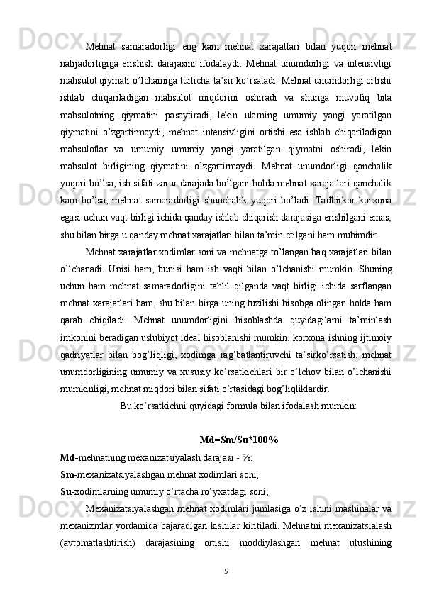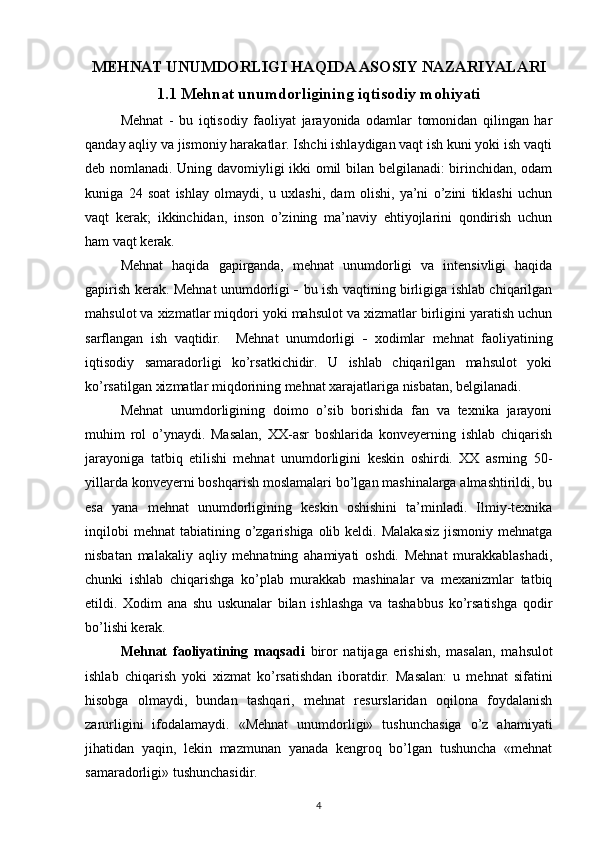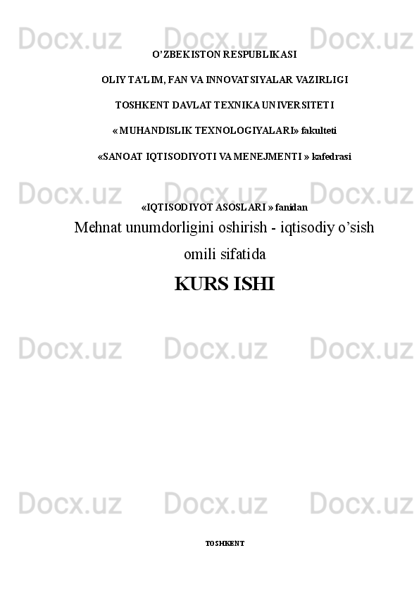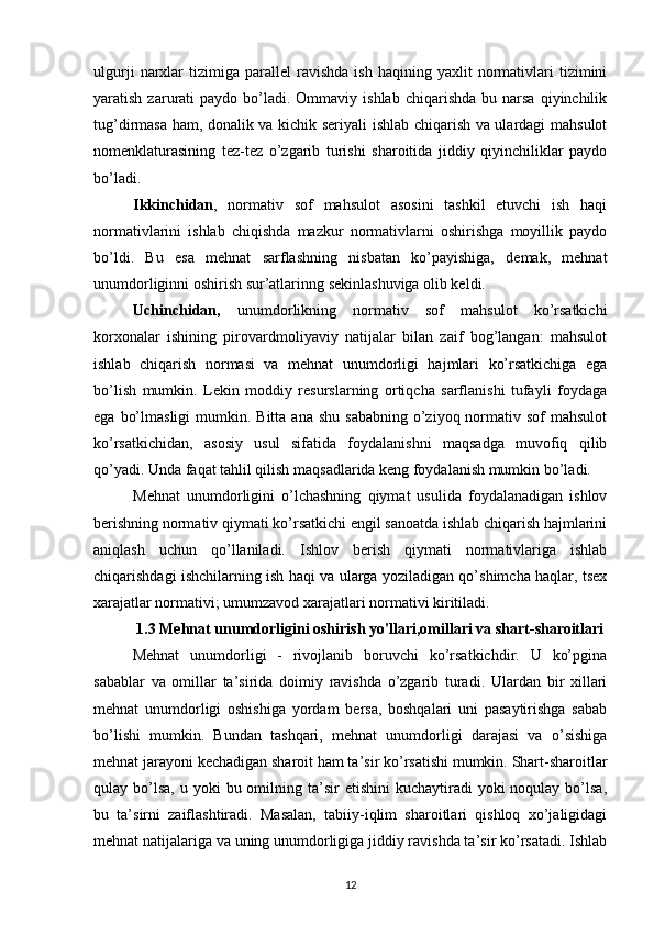 Mehnat unumdorligini oshirish - iqtisodiy o’sish omili sifatida
