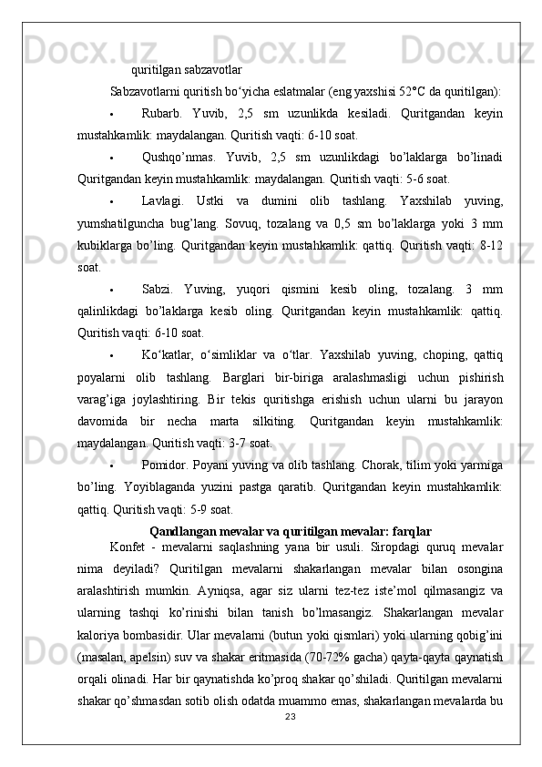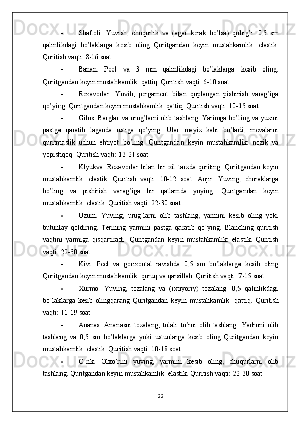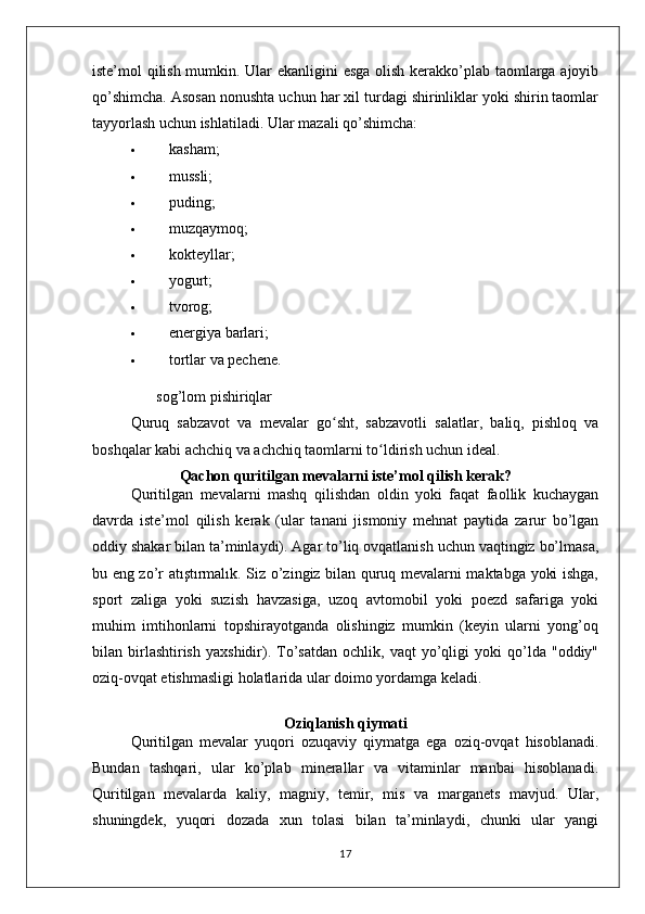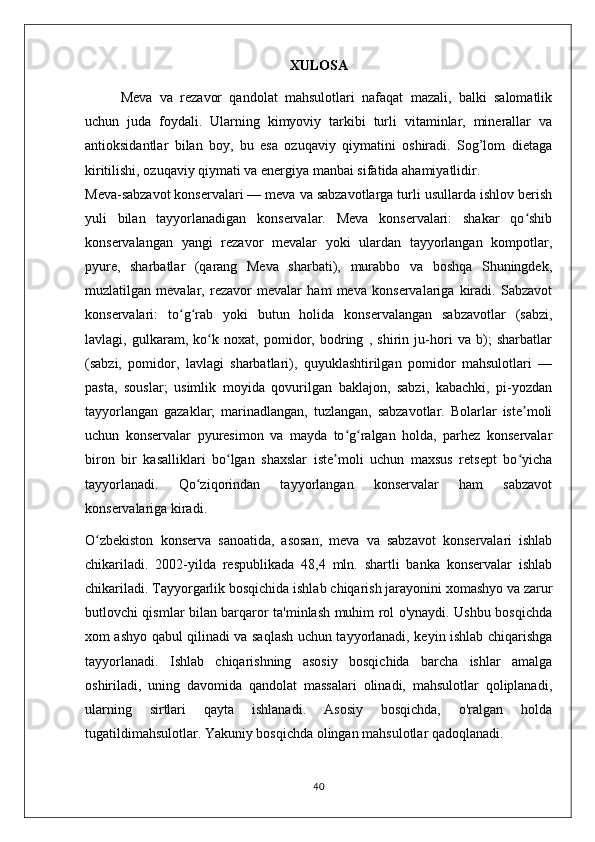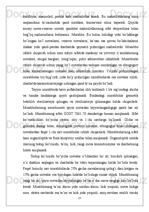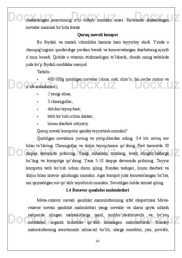 MEVA VA REZAVOR QANDOLAT MAHSULOTLARINING TURLARI