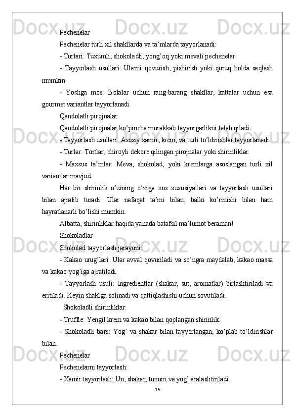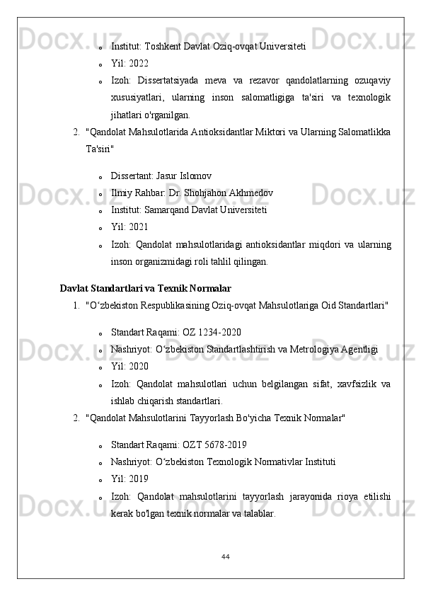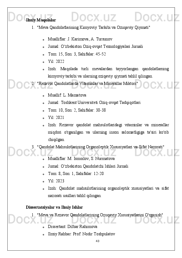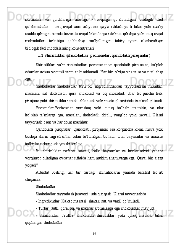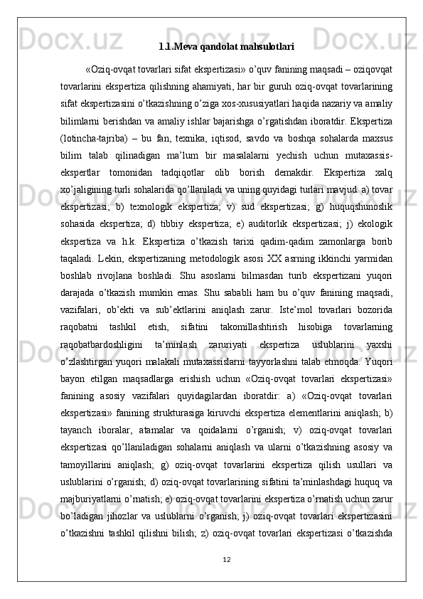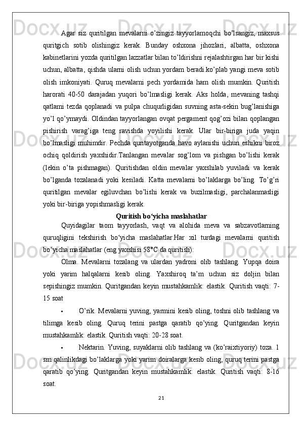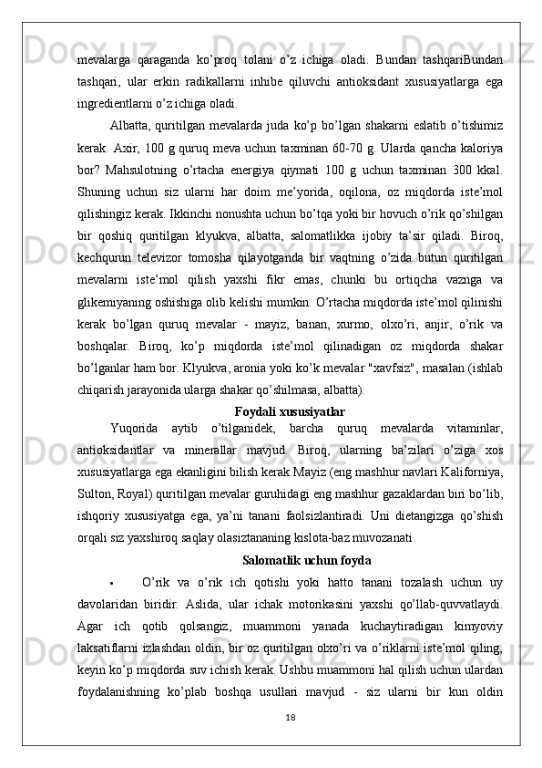 MEVA VA REZAVOR QANDOLAT MAHSULOTLARINING TURLARI
