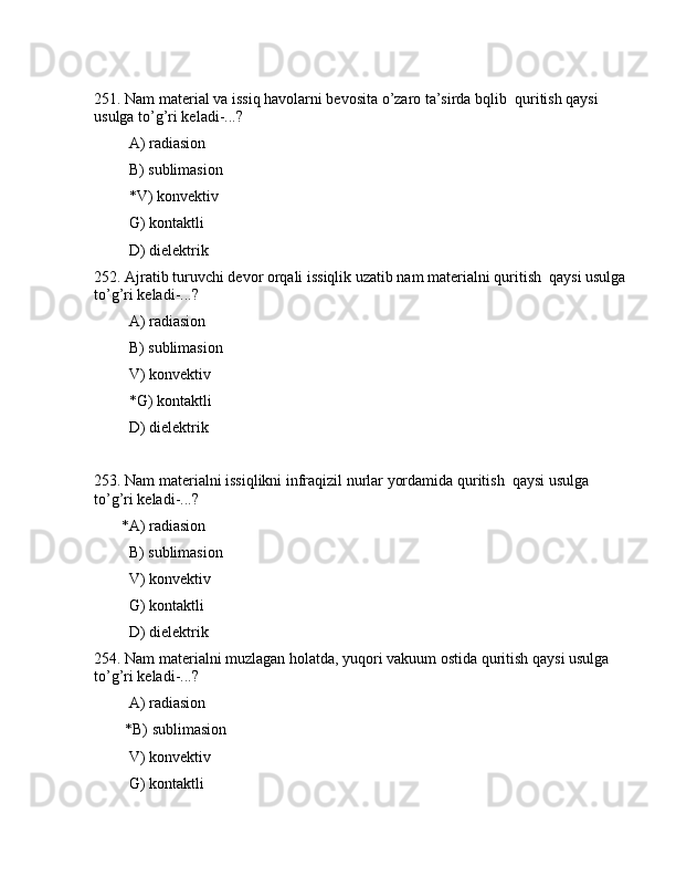 265. Qаysi quritish usulidа mаtеriаldаgi nаmlik qаttiq hоlаtdаn suyuq hоlаtgа o’tmаsdаn bug’ аgrеgаt hоlаtigа sаkrаb o’tаdi-...?