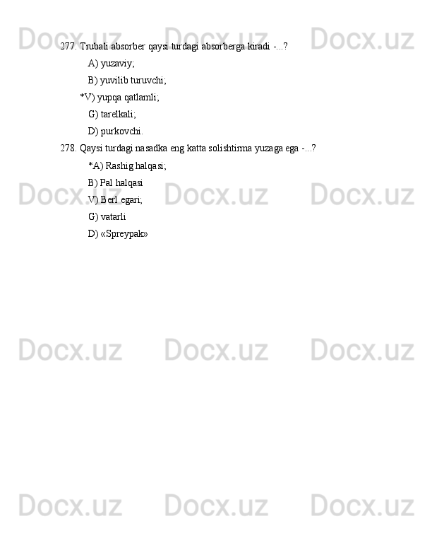 277. Trubаli аbsоrbеr qаysi turdаgi аbsоrbеrgа kirаdi -...?