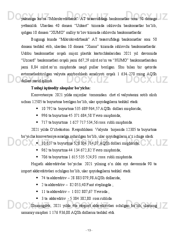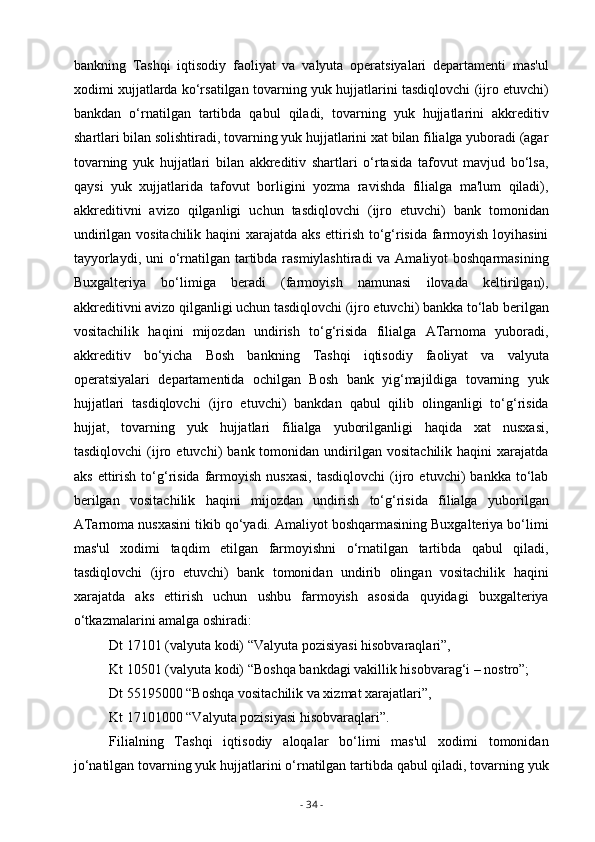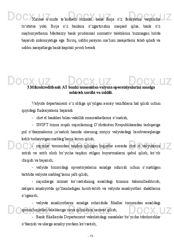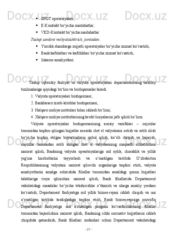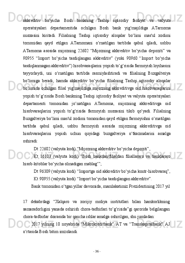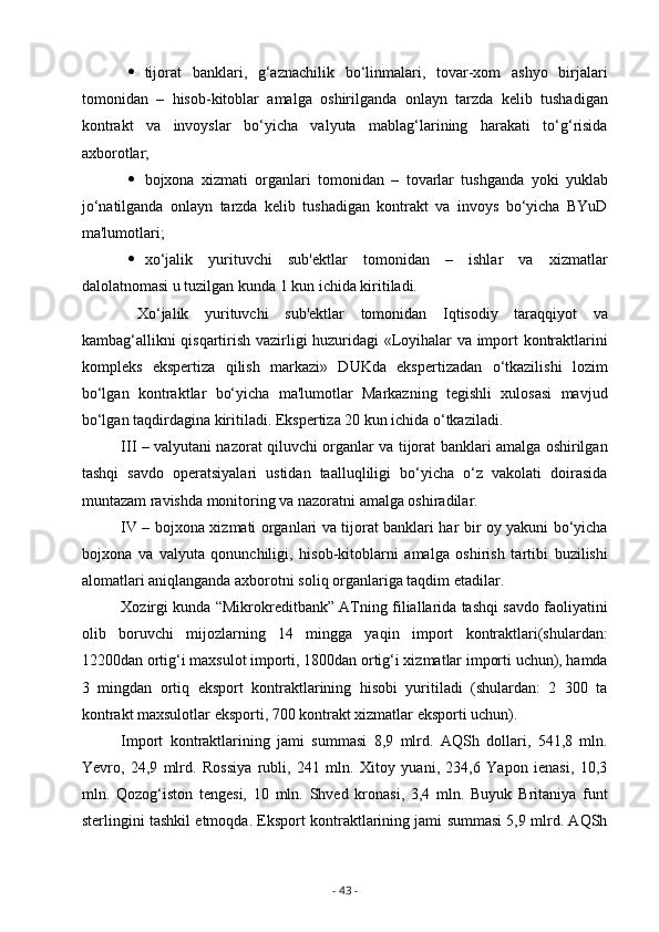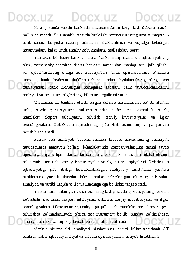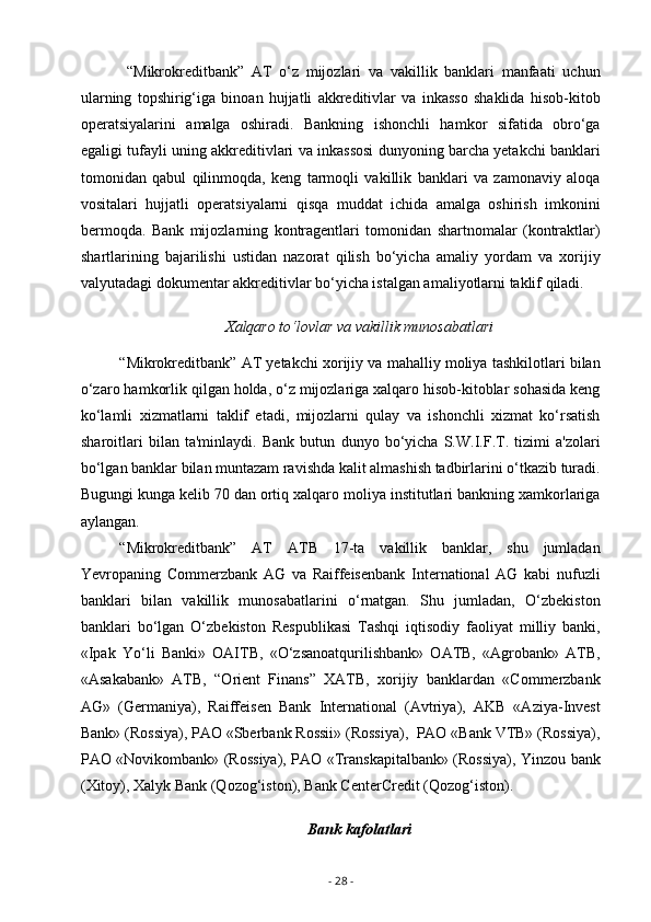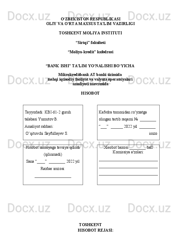Mikrokreditbank AT banki tizimida tashqi iqtisodiy faoliyat va valyuta operatsiyalari amaliyoti mavzusida hisobot