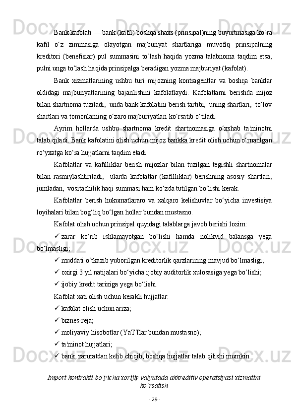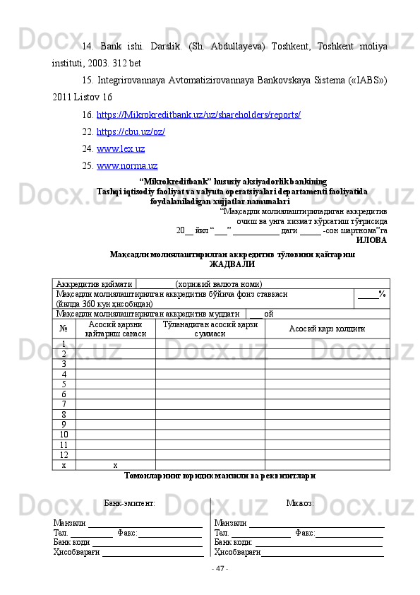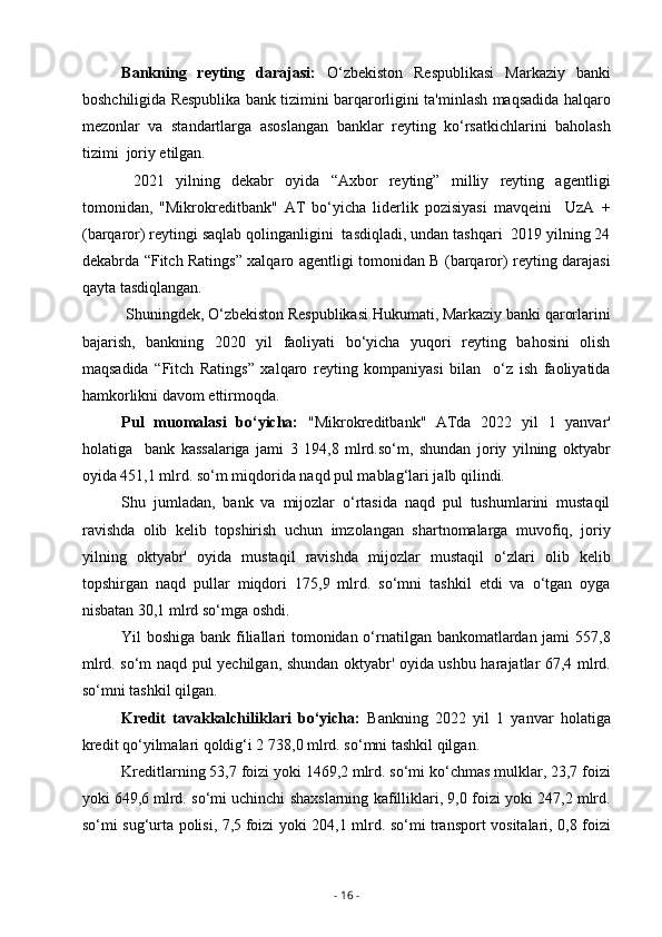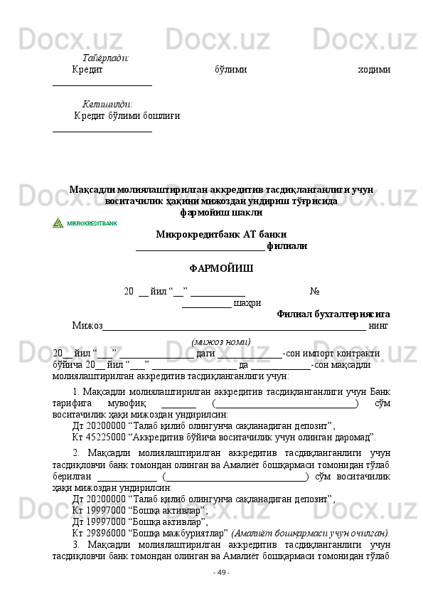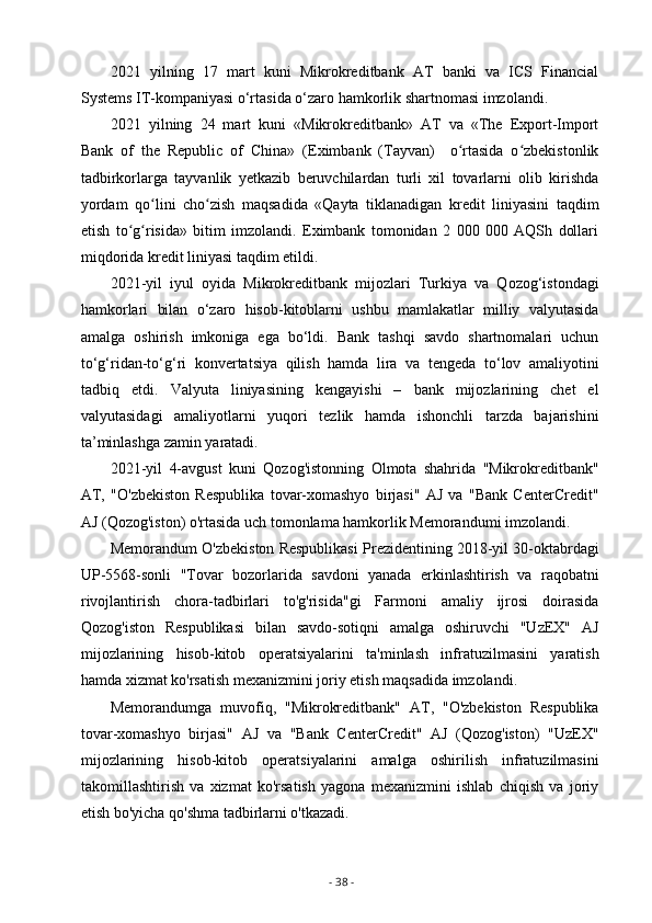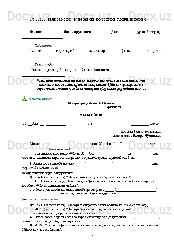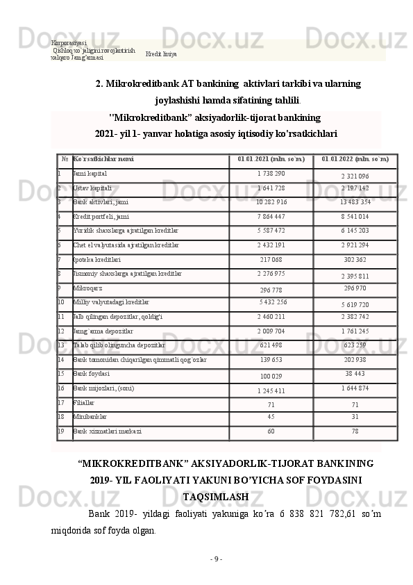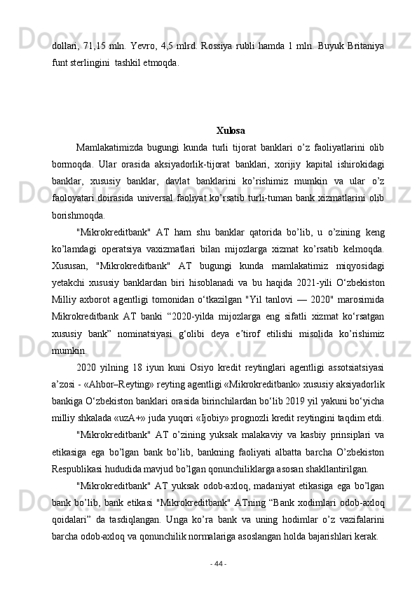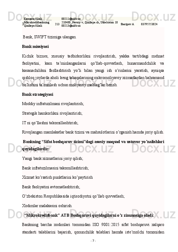 Mikrokreditbank AT banki tizimida tashqi iqtisodiy faoliyat va valyuta operatsiyalari amaliyoti mavzusida hisobot