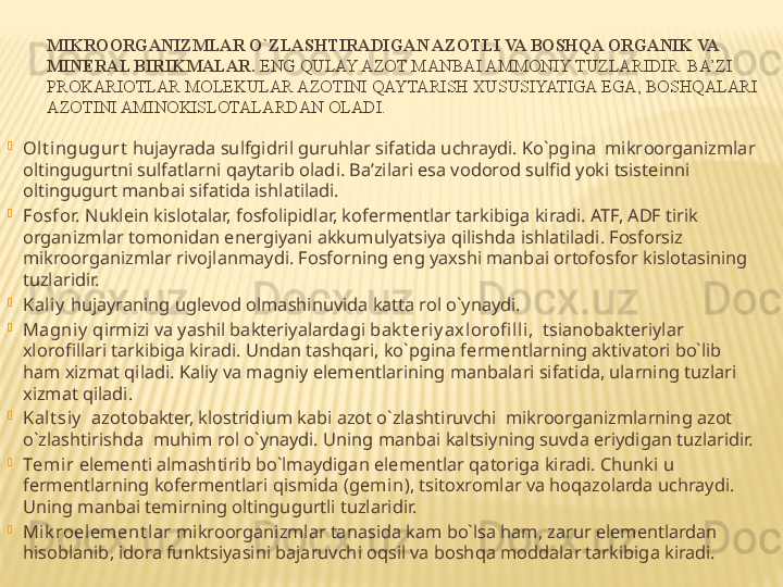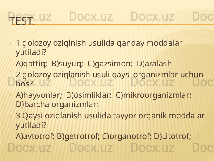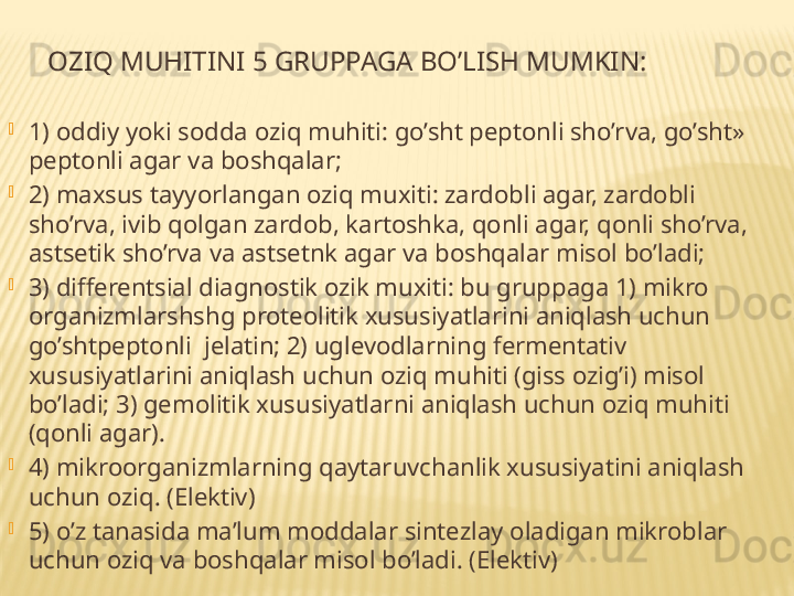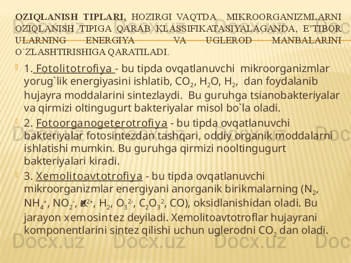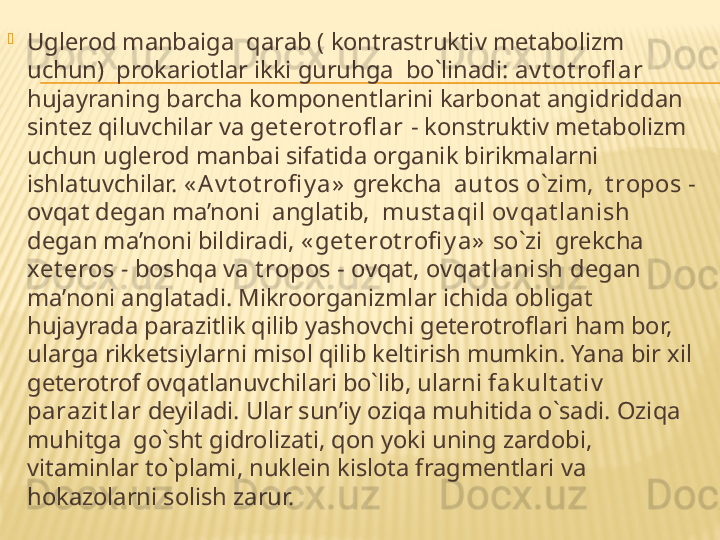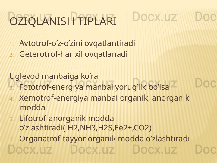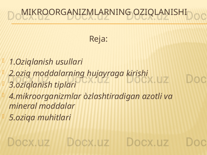 Mikroorganizmlarning oziqlanishi