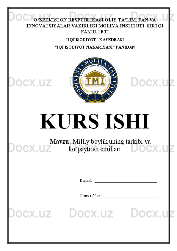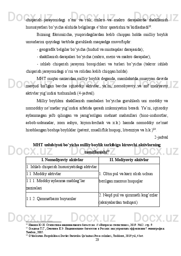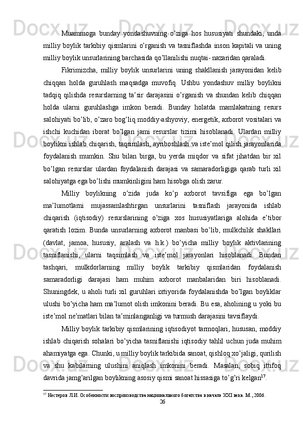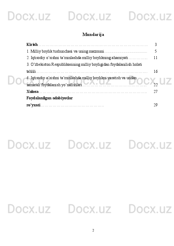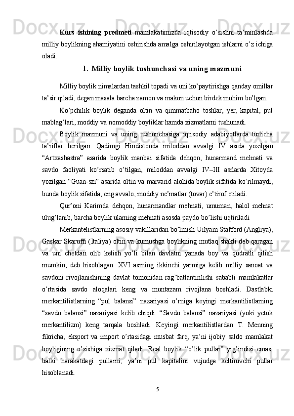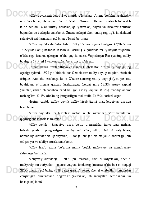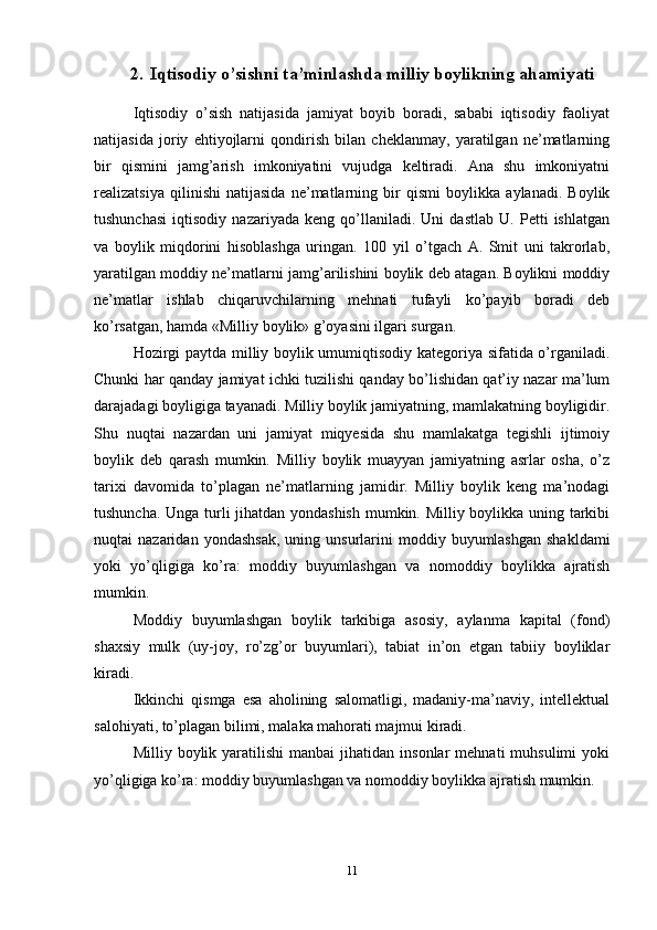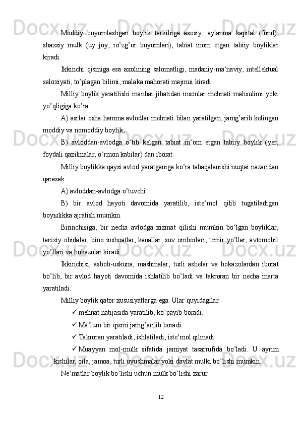 Milliy boylik uning tarkibi va ko’paytrish omillari