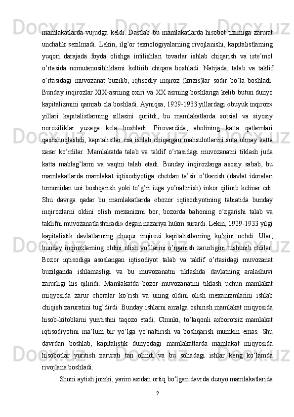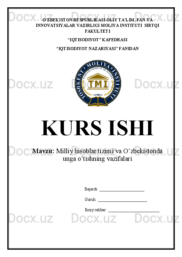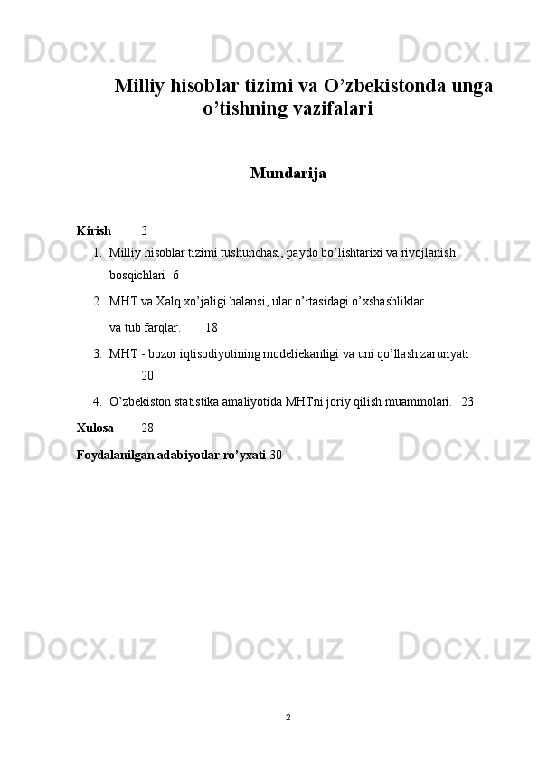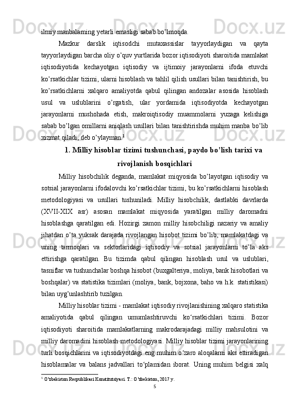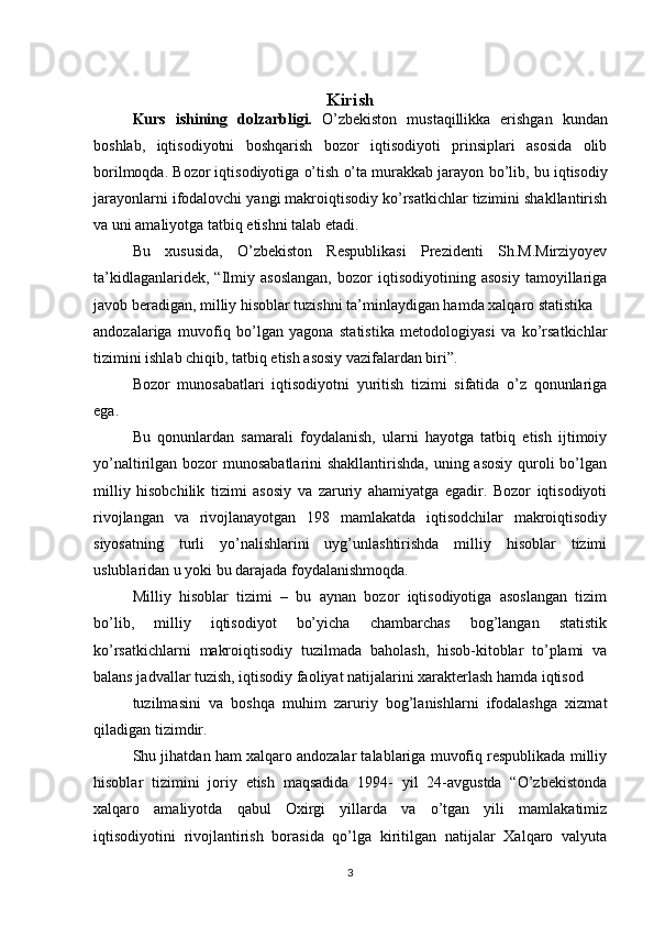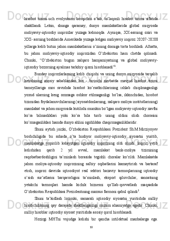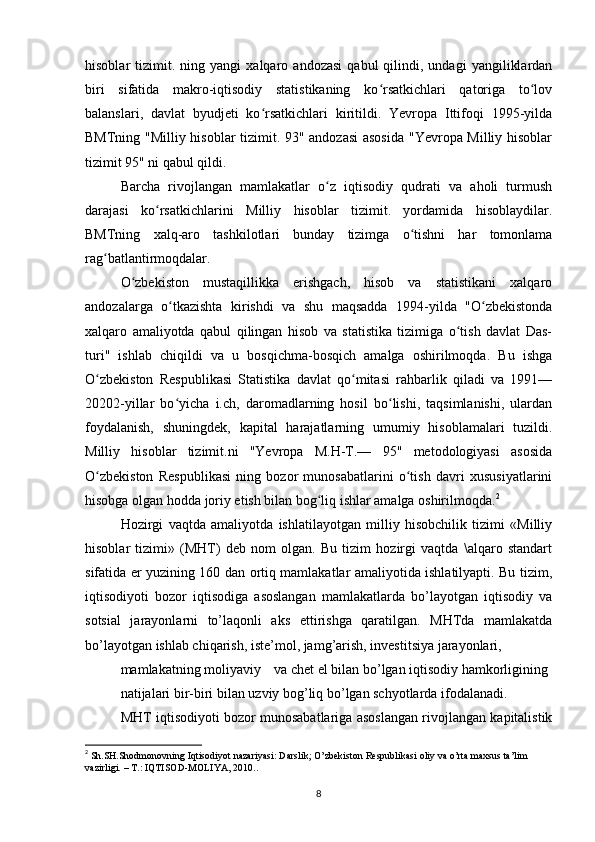 Milliy hisoblar tizimi va O’zbekistonda unga o’tishning vazifalari