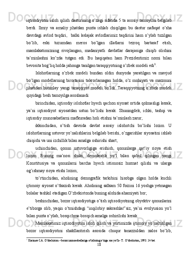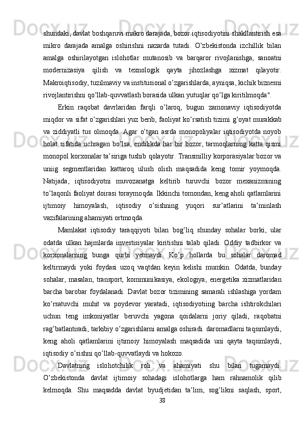 Milliy mustaqil taraqqiyotning o‘zbek modeli va uning jahonda tan olinishi