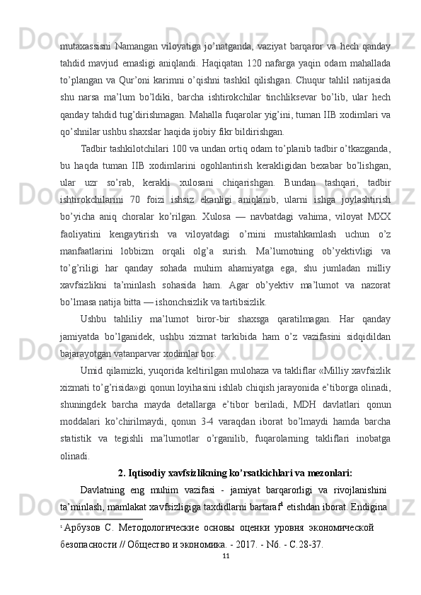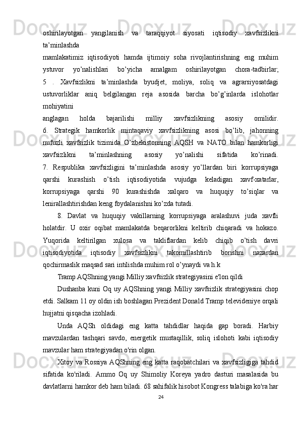 Milliy va iqtisodiy xavfsizlik haqida tushuncha va unda Amerika tajribasi