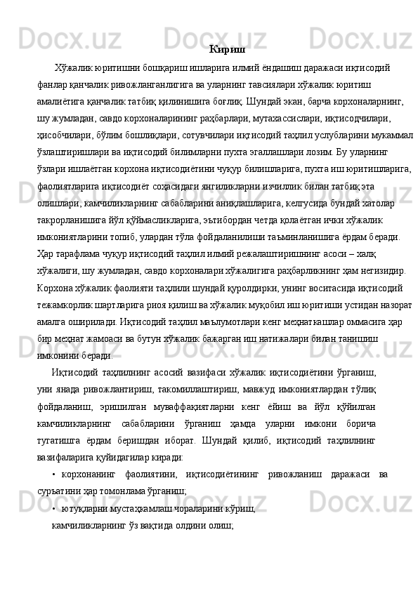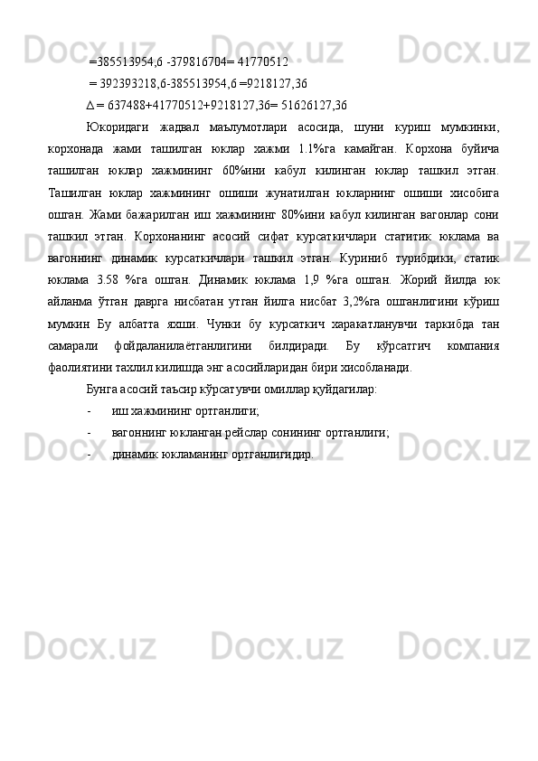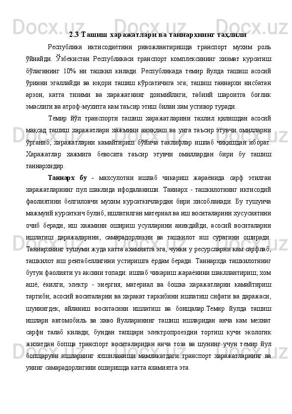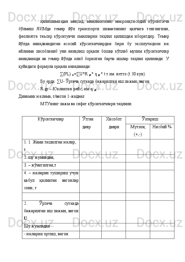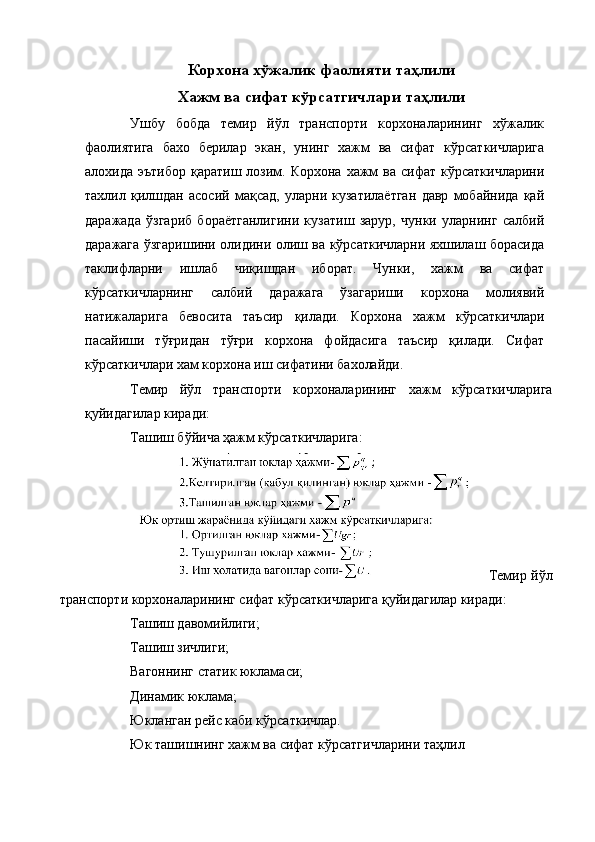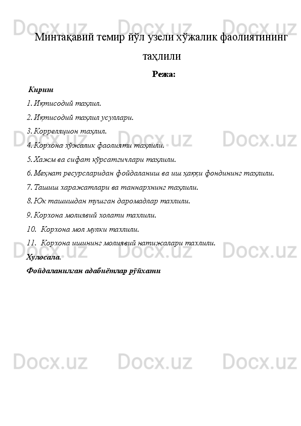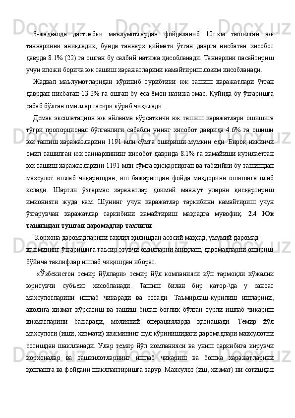 Минтақавий темир йўл узели хўжалик фаолиятининг таҳлили