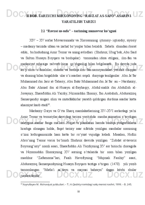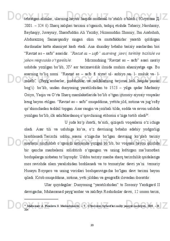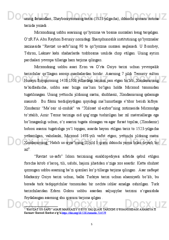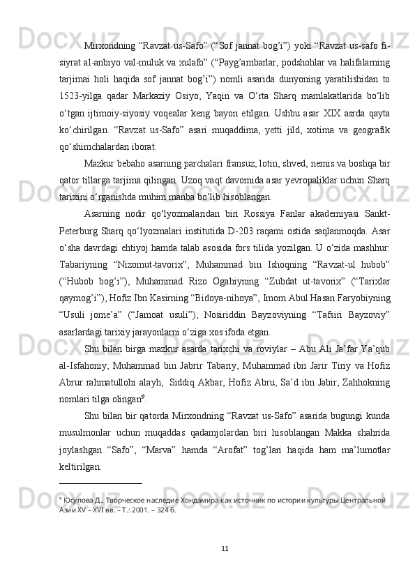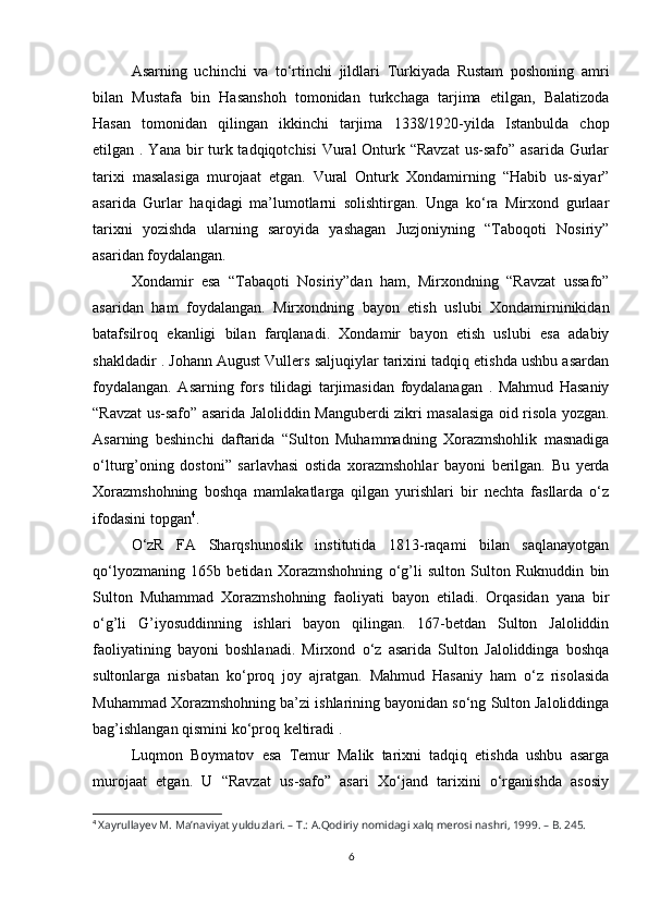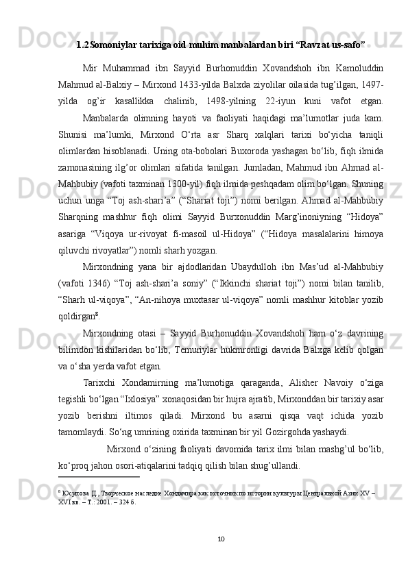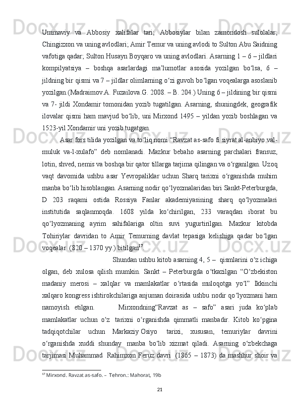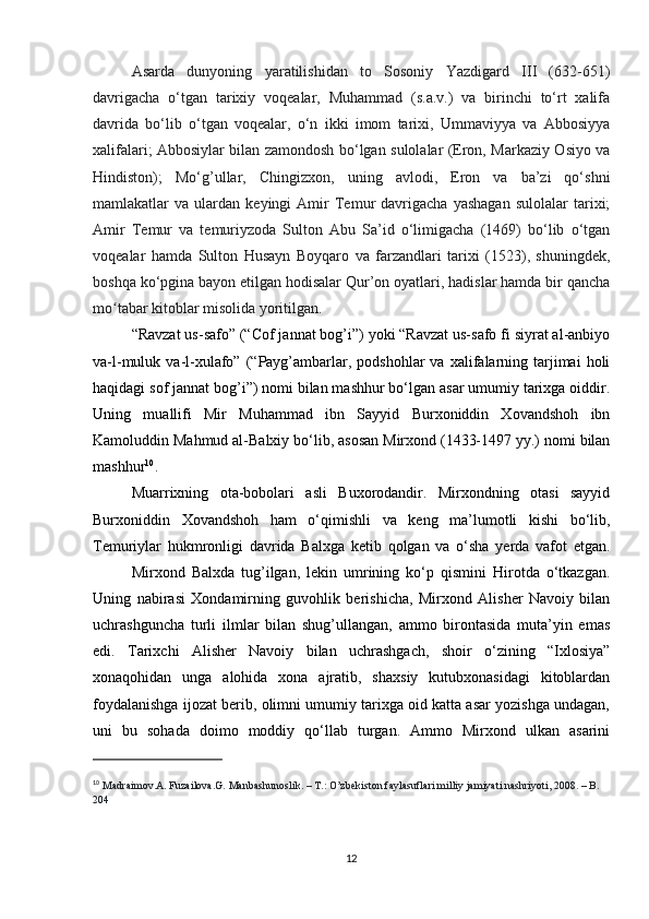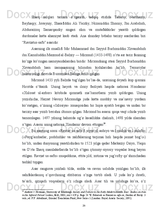 MIRXONDNING RAVZAT AS-SAFO ASARI SOMONIYLAR TARIXIGA OID MUHIM MANBA
