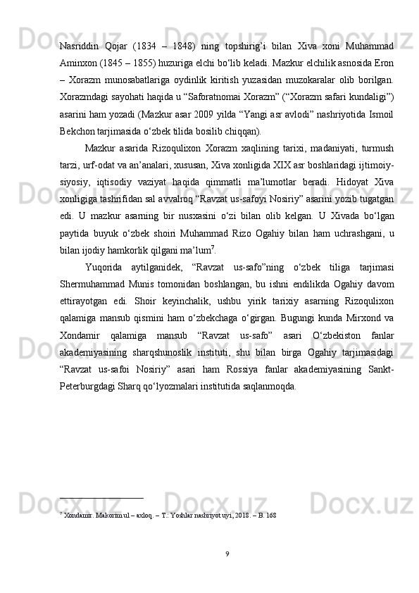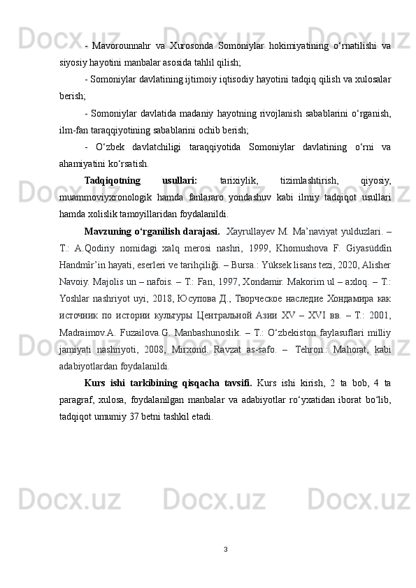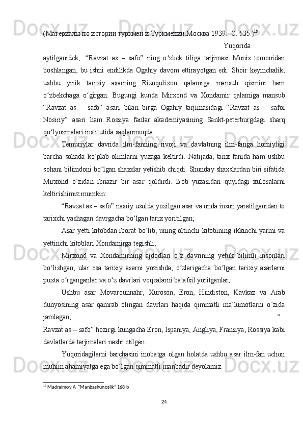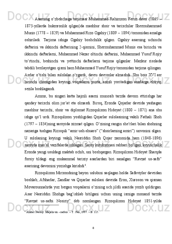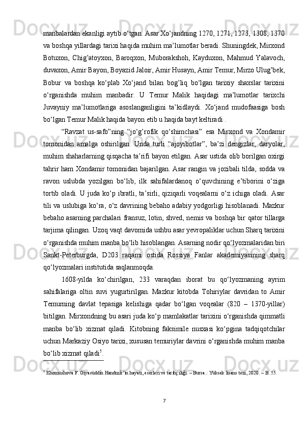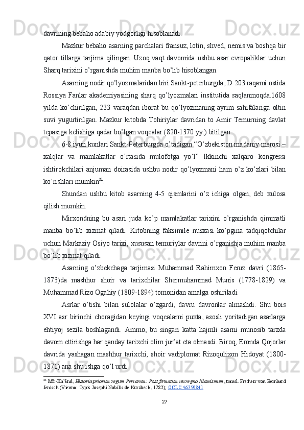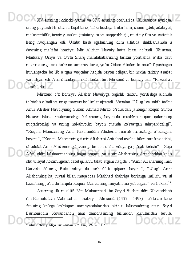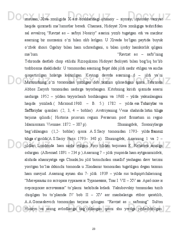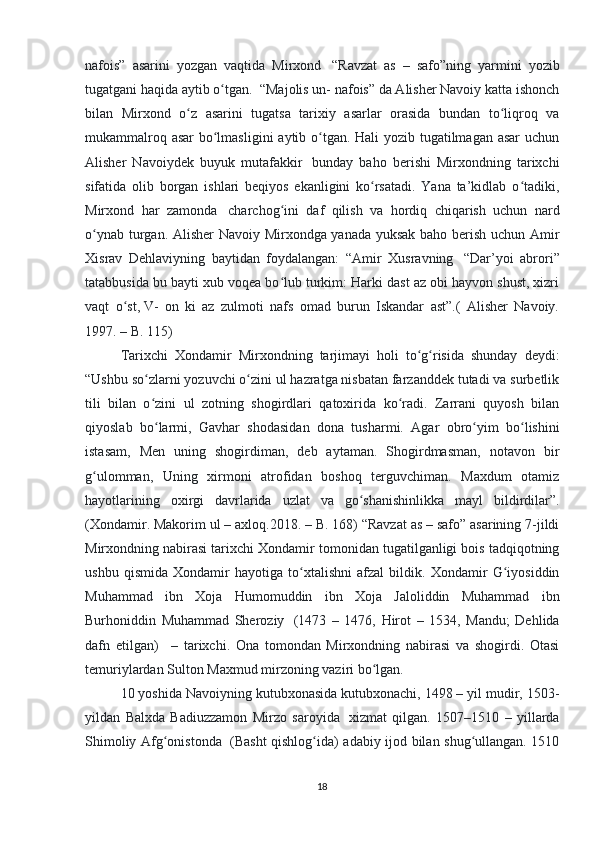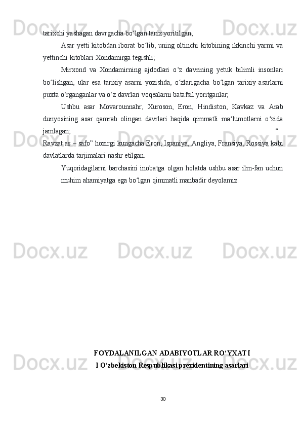 MIRXONDNING RAVZAT AS-SAFO ASARI SOMONIYLAR TARIXIGA OID MUHIM MANBA