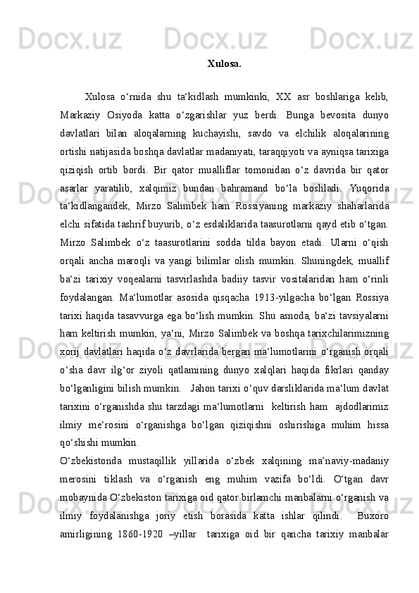 Мirzo Salimbek asarlari tarixiy manba sifatida