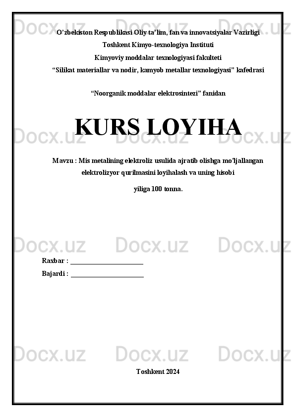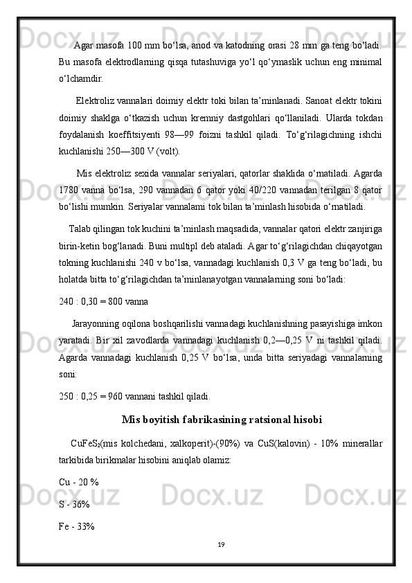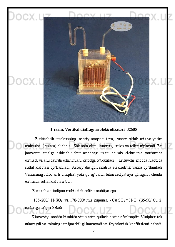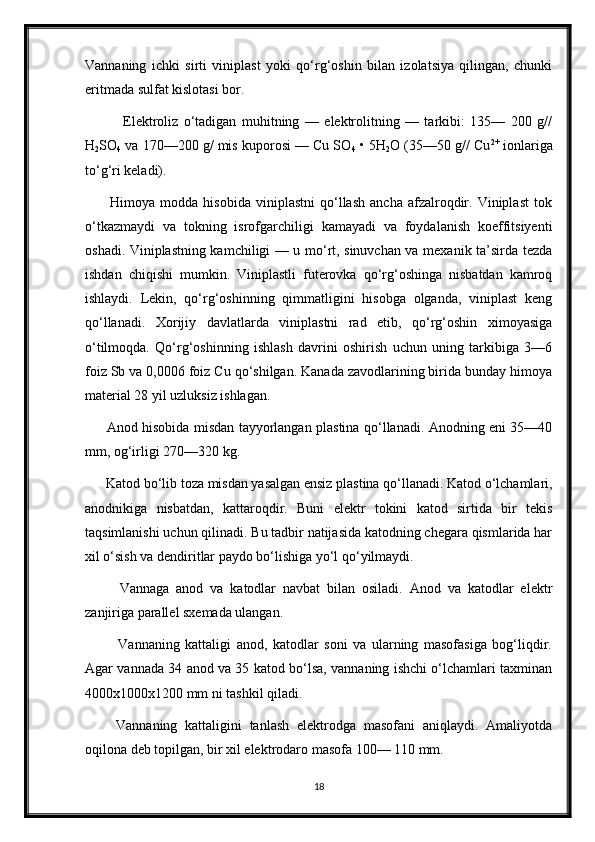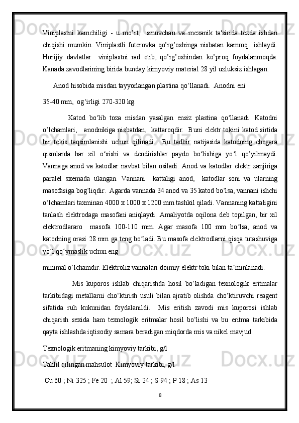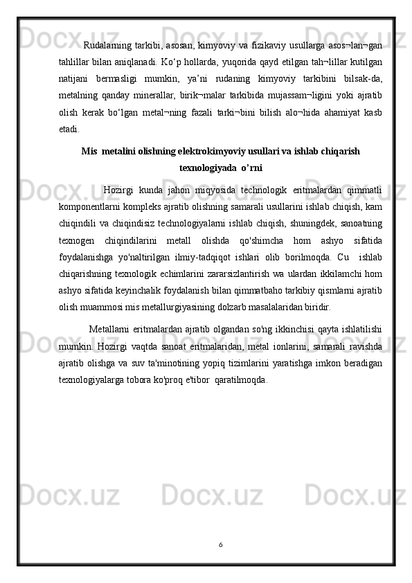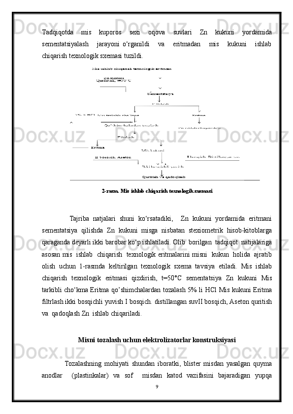 2.3 Mis metalini olishning elektrokimyoviy usuli __ __ __ __ __ 8