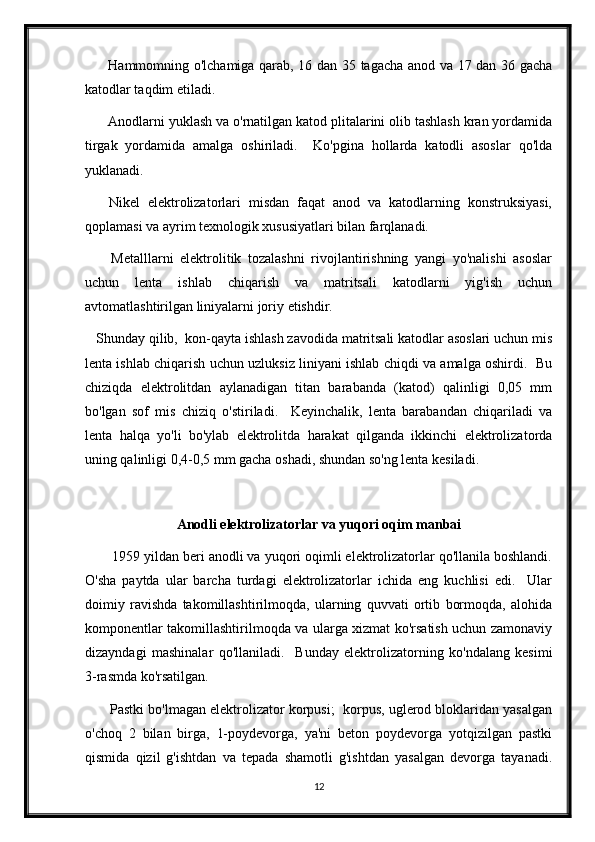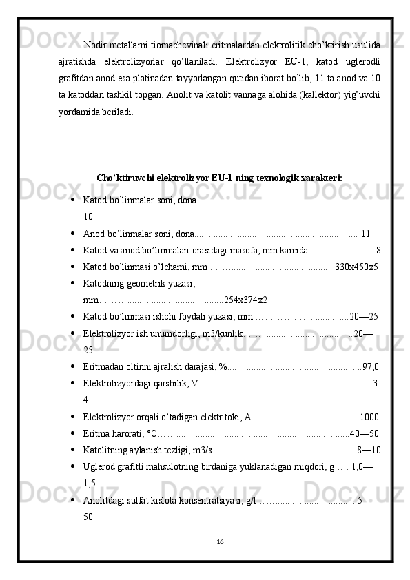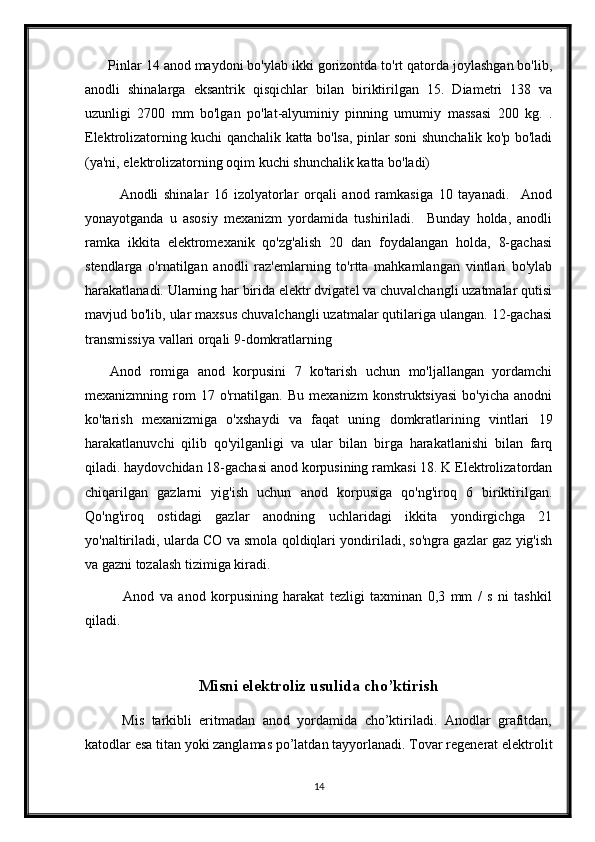 3.2 Anodli elektrolizatorlar va yuqori oqim manbai __ __ __ __ __ __ 16