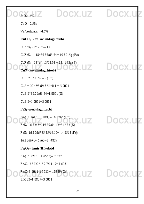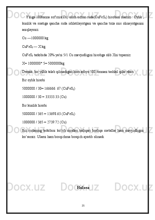 3.3 Mis boyitish fabrikasining ratsional hisobi __ __ __ __ __ __ __ 22