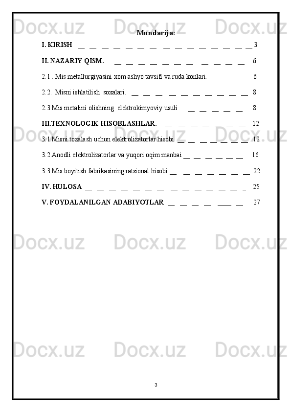 I. KIRISH __ __ __ __ __ __ __ __ __ __ __ __ __ __ __ 3