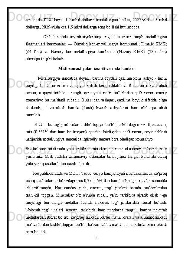 2.1 . Mis metallurgiyasini xom ashyo tavsifi va ruda konlari. __ __ __ 6