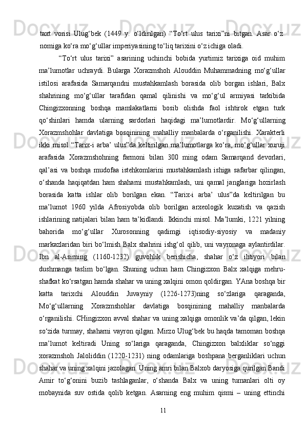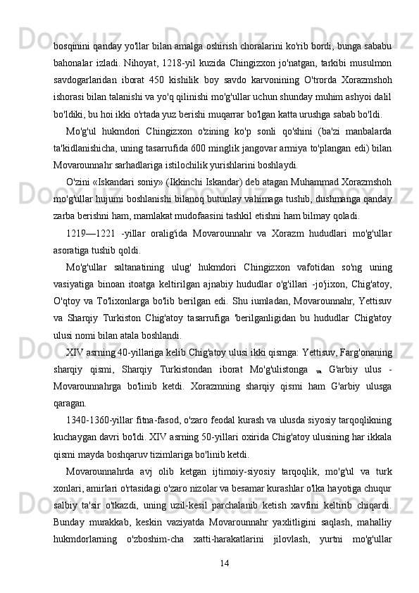 Mo’g’ullar istilosi davrini o’rgangan olimlar