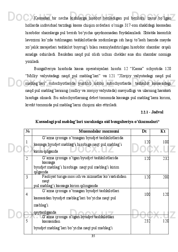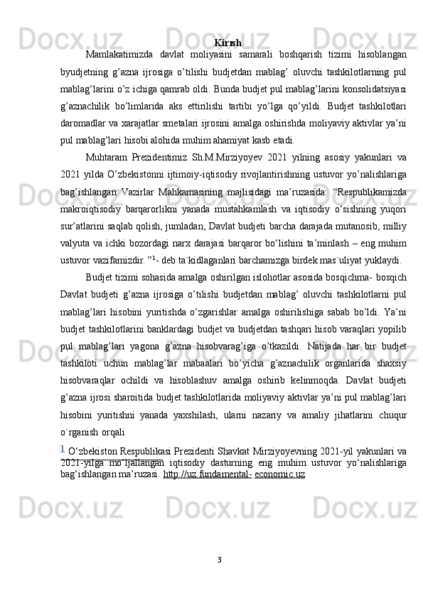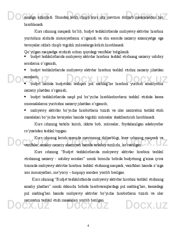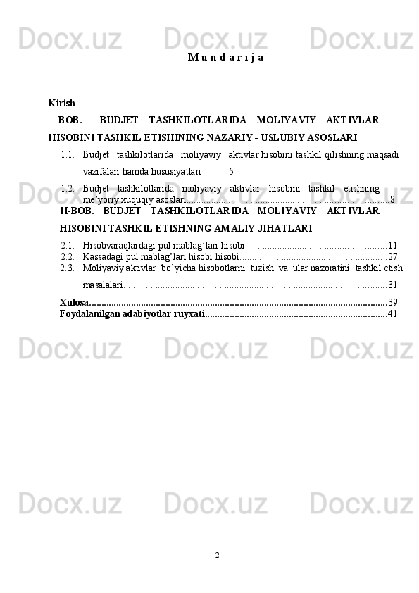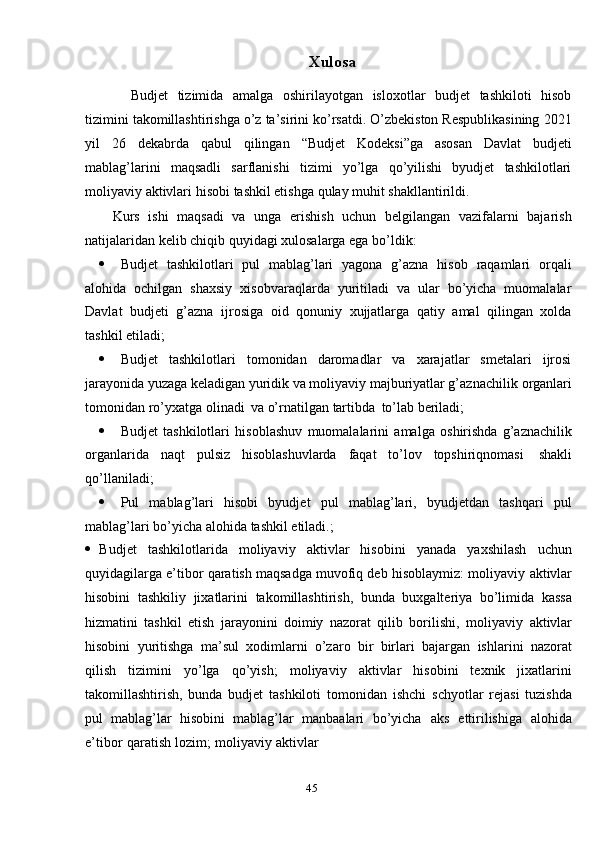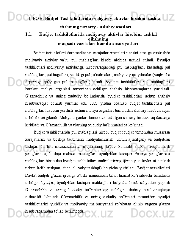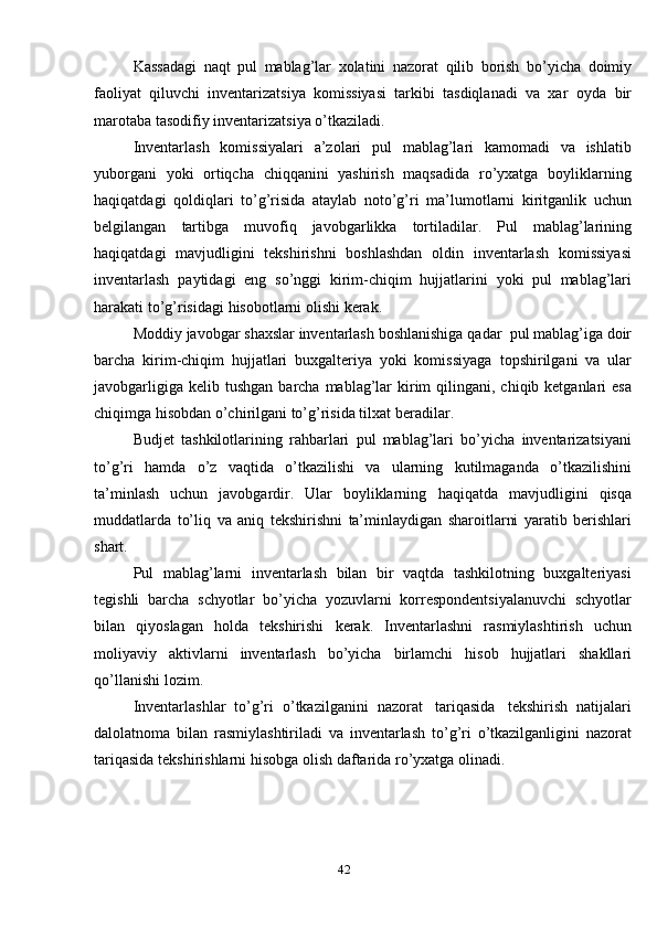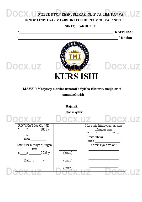 Moliyaviy aktivlar nazorati bo’yicha tekshiruv natijalarini umumlashtrish
