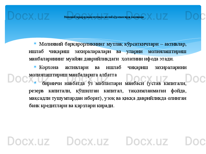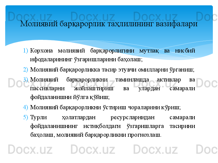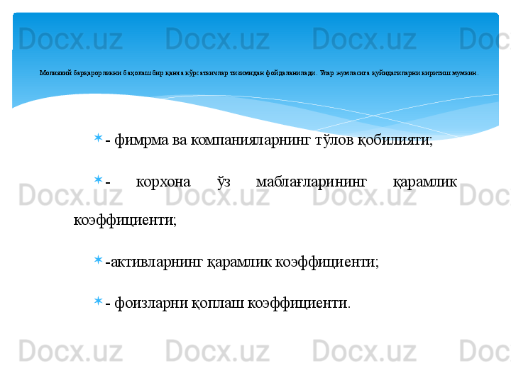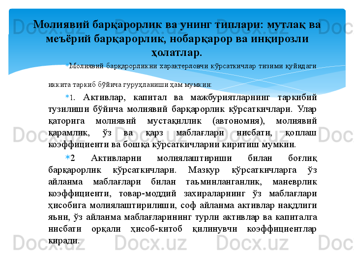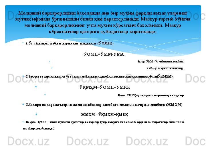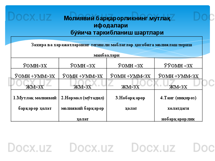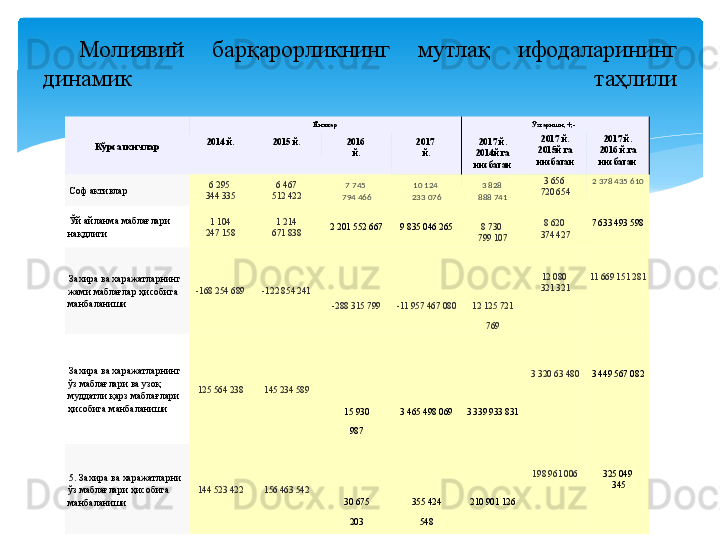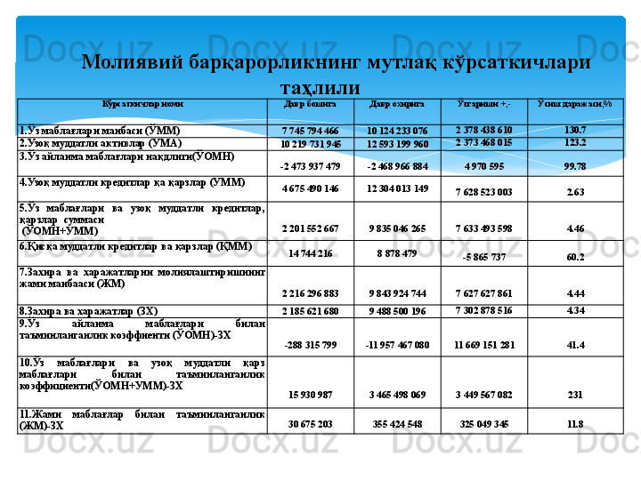 Молиявий барқарорлик таҳлили