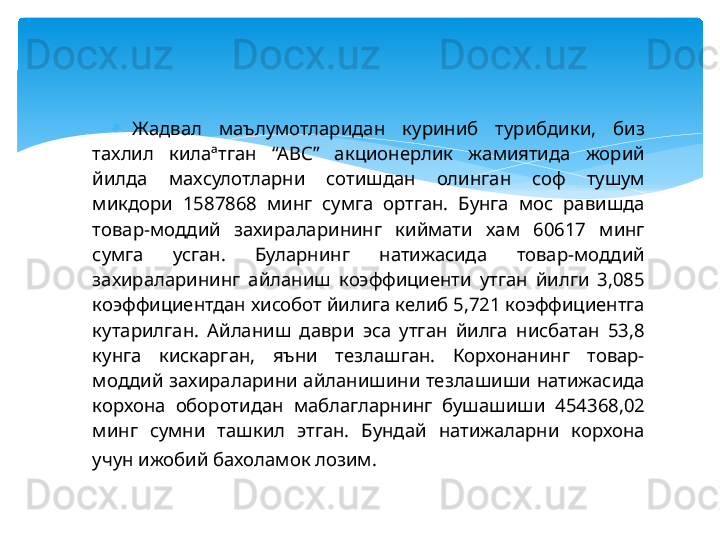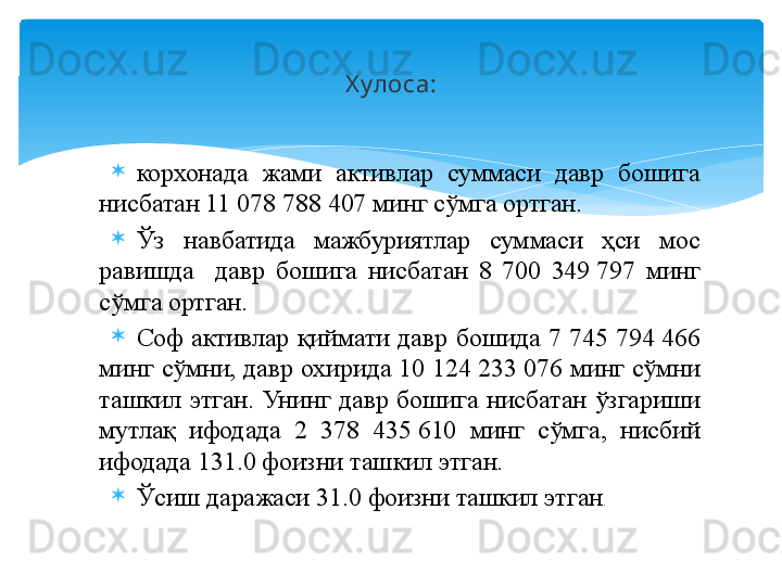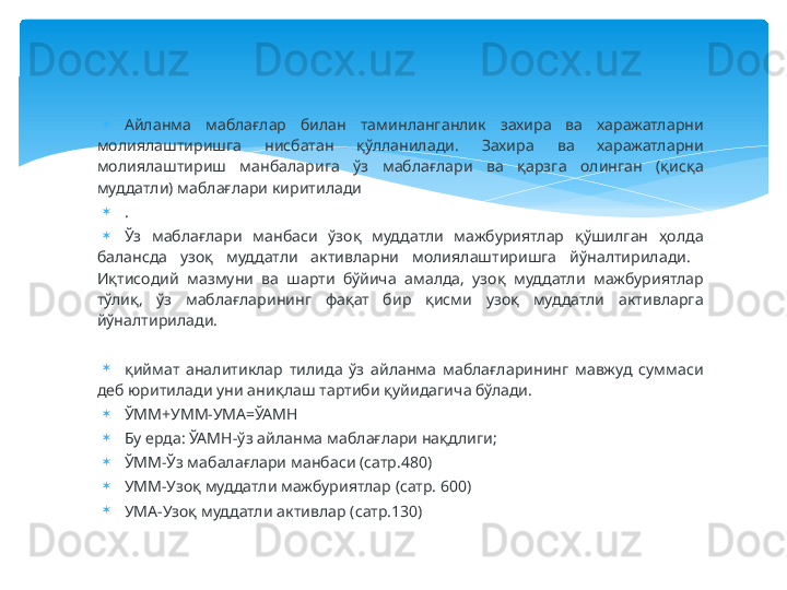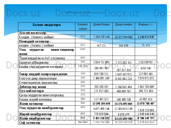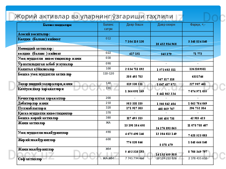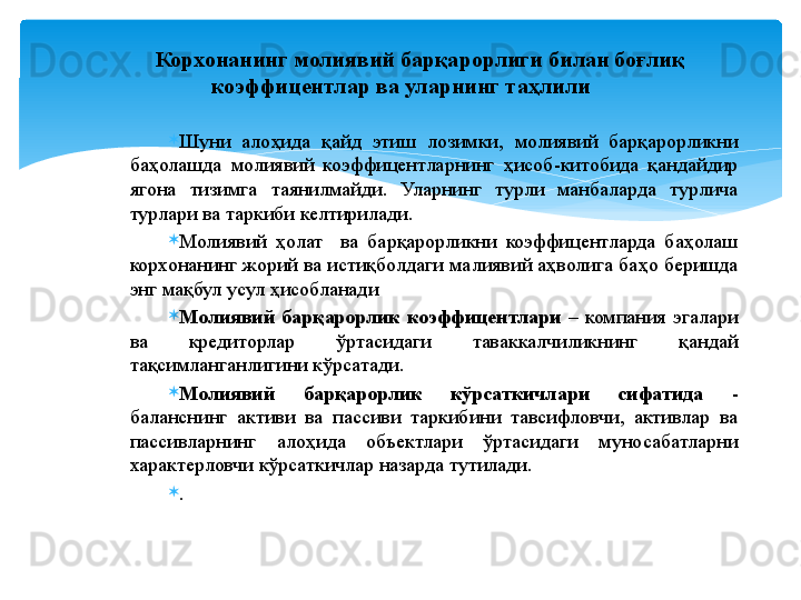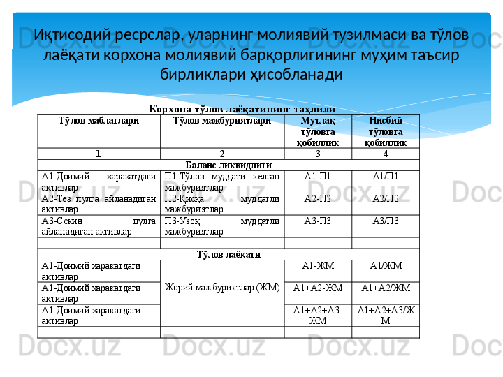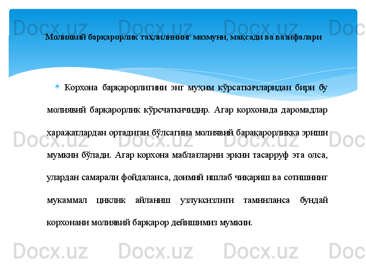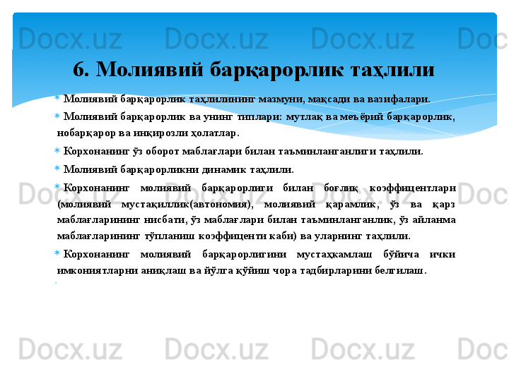 Молиявий барқарорлик таҳлили